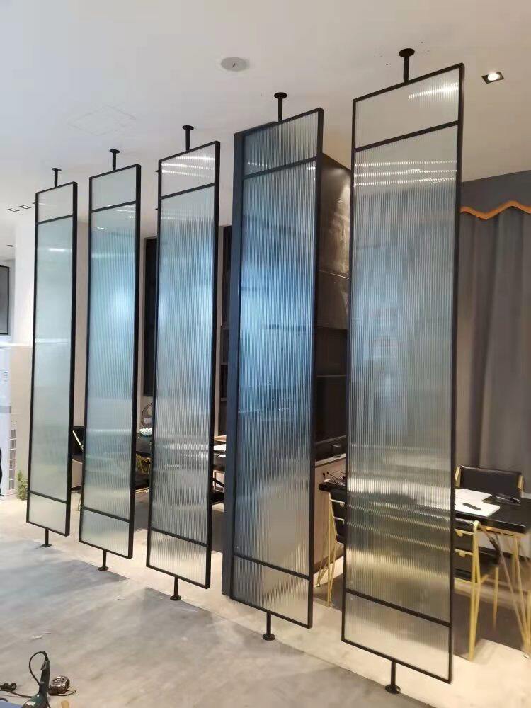Custom Long Iridescent Glass Screen Partition Iron Art Stainless Steel Fencing Hotel Minima Light Extravagant Hollowed-out Into The House