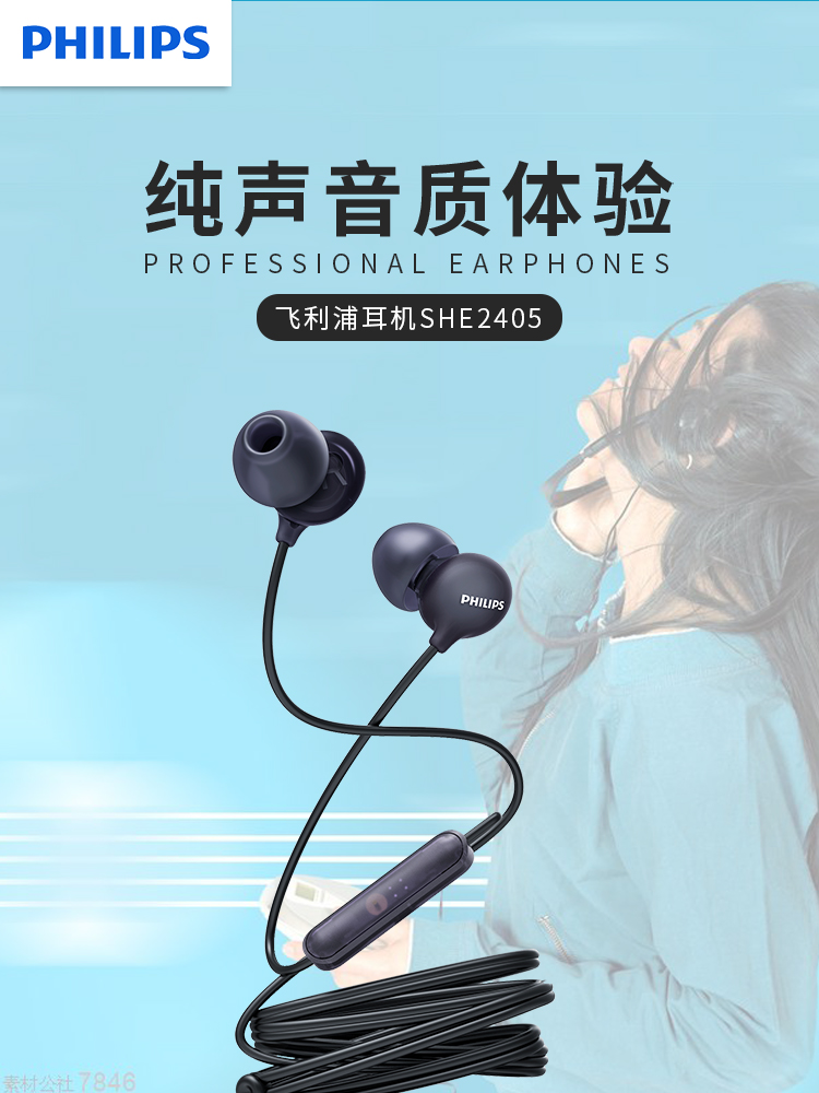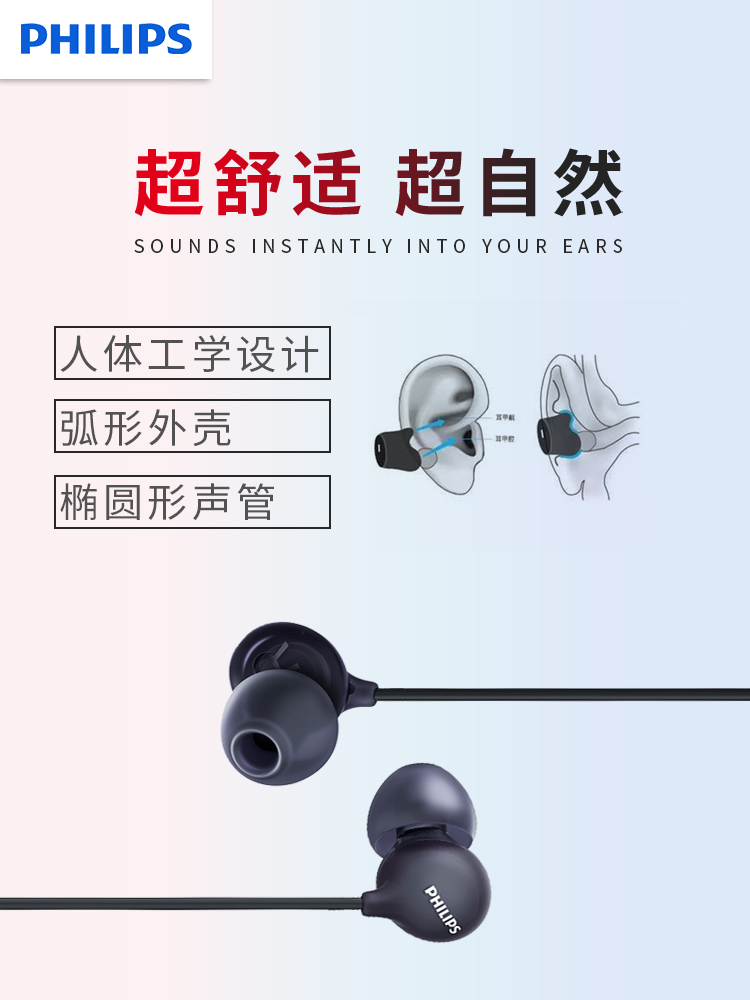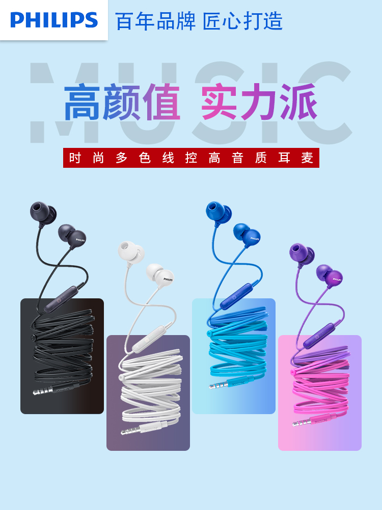 Philips Philips SHE2405 in-ear headphones wired gradient color sports subwoofer noise reduction headset