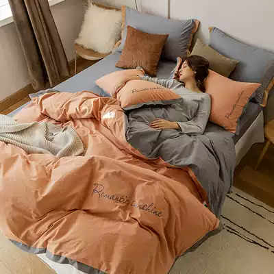 Class A satin 60s washed cotton four-piece set pure cotton spring and autumn bed three-piece simple quilt cover bed simple color