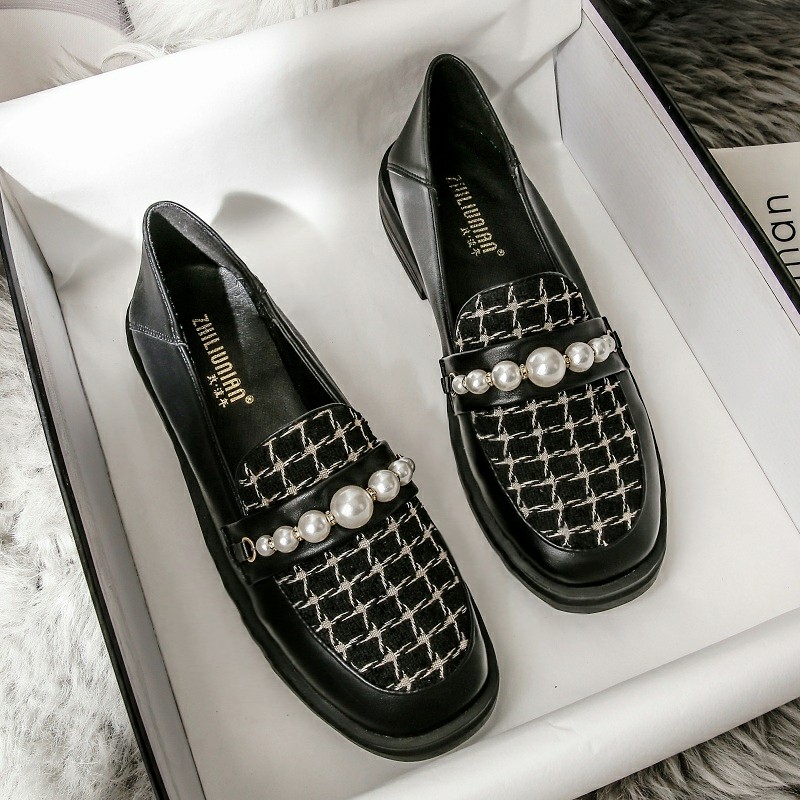 Large size women's shoes 2022 small leather shoes women's British style all-match retro small fragrance style single shoes low-heeled loafers 41-43