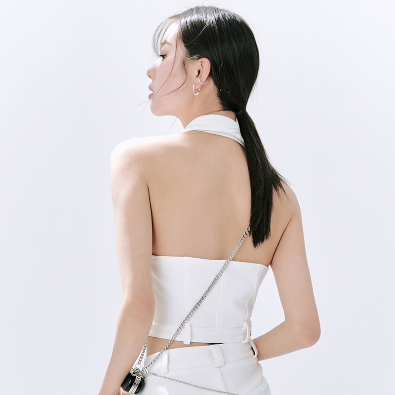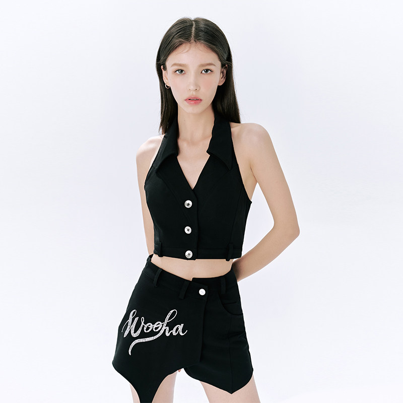 WooHa Wuha original summer new lapel sleeveless suit vest female personality simple sweet and cool backless top