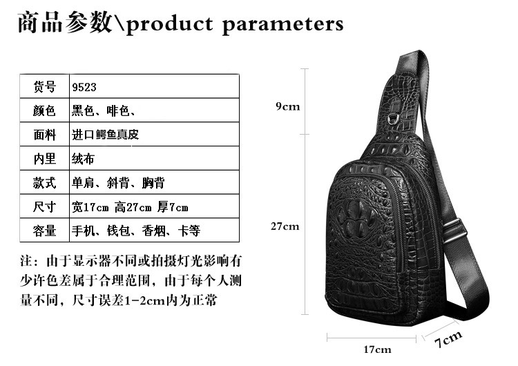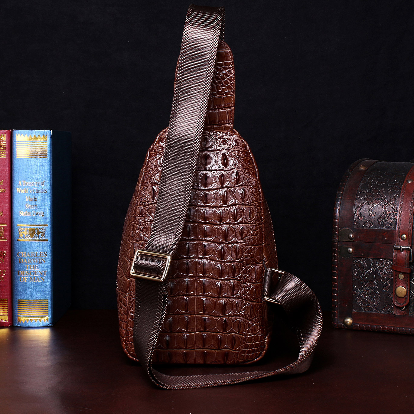 Thai crocodile leather bag male tide vertical zipper light luxury leather man single shoulder slope bag in tide bag