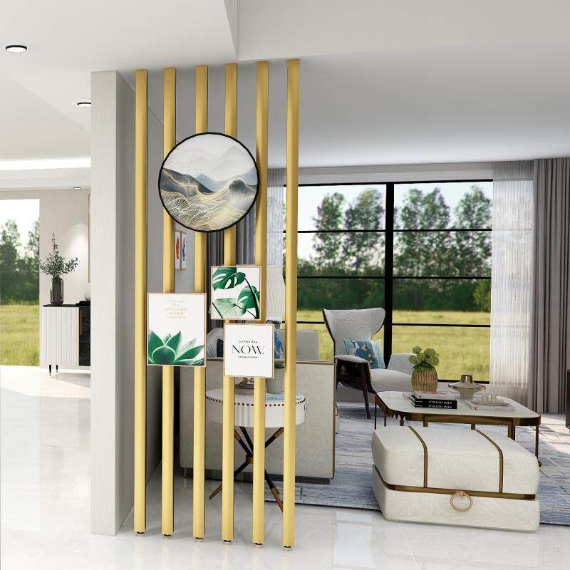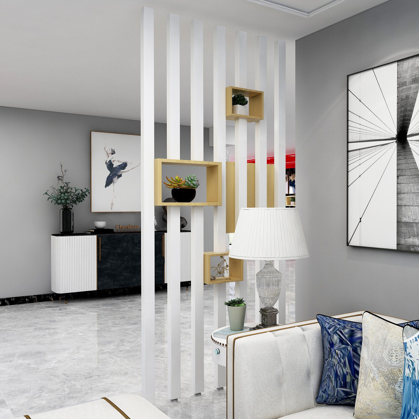Modern Minimalist Iron Art Pillar Entrance Screen Solid Wood Living Room Dining Room Partition Hollowed-out Office Decoration Vertical Stripe Gengguan