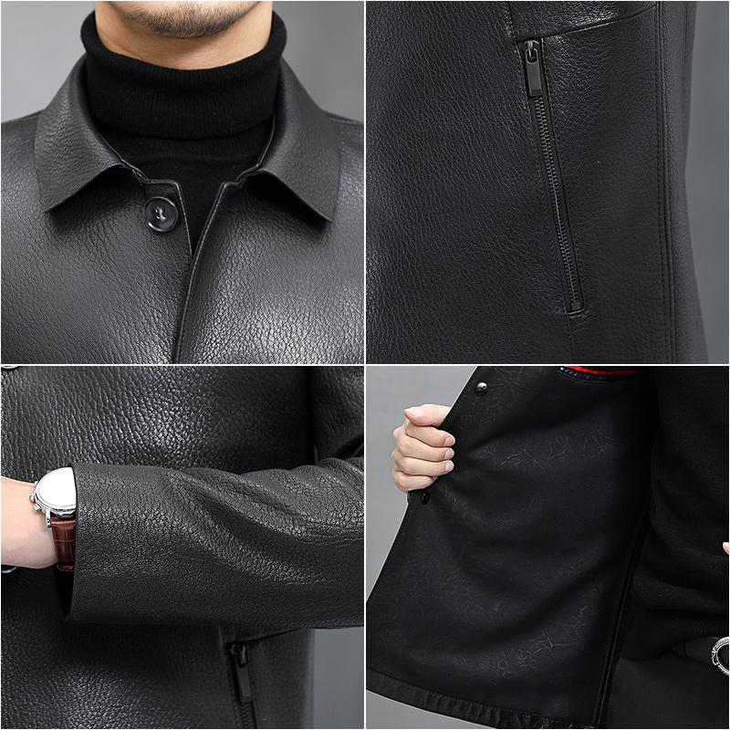 2022 Spring new headlayer Deer Skin Leather Clothing Men Real Leather Jacket Short-in-the-head Senile Dad Dress Coat