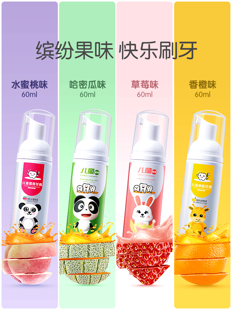 Children's Mousse Foam Toothpaste 1 can be swallowed 3-6 A fluoride-free U toothbrush for over 12 years old 2 Anti-moth cleansing bubbles