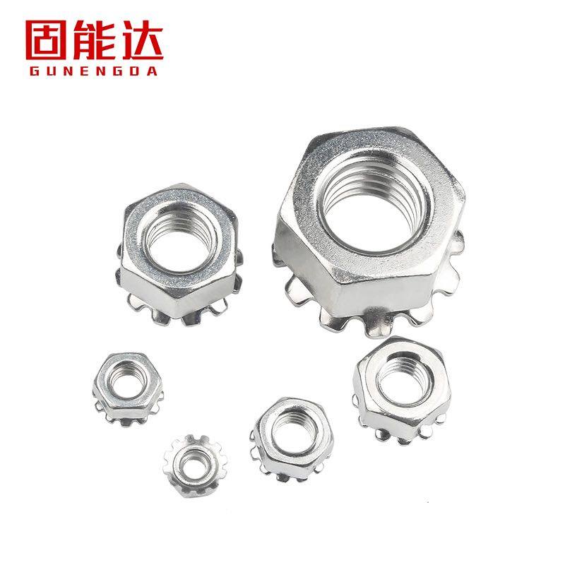 National Pelotine made 304 stainless steel toothed screw cap iron plated nickel K cap nut multi-tooth nut M3M4M5M6M8