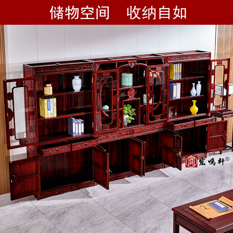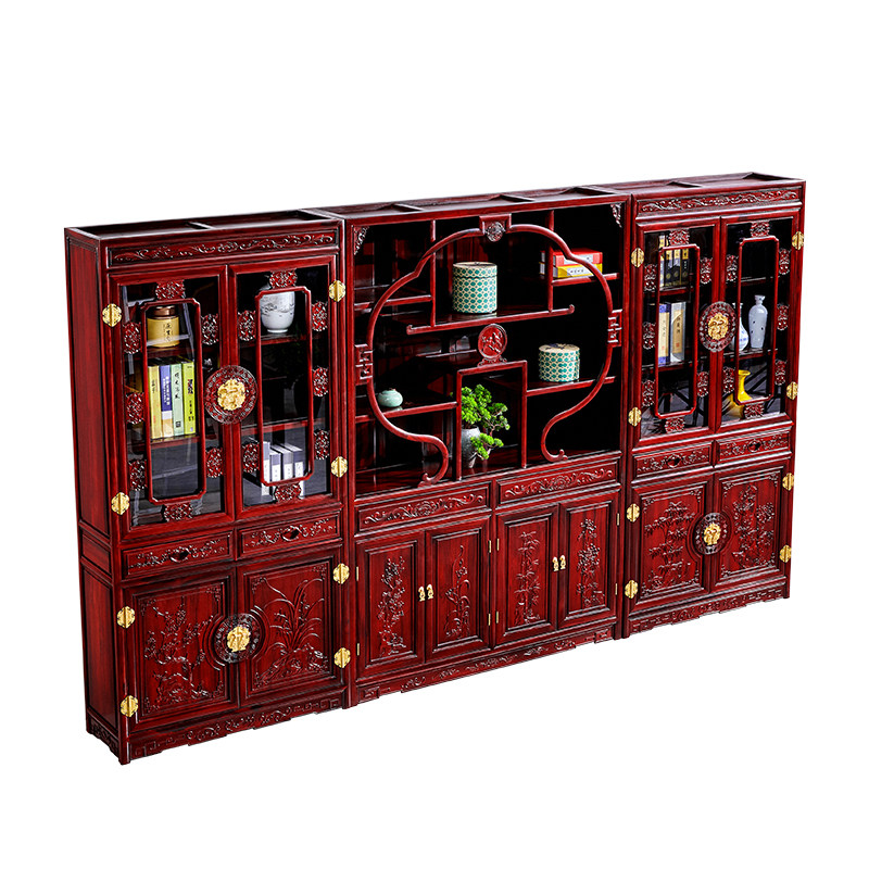 South American Acid Branches Season Flowers Bookcase Three Groups Of Chinese Solid Wood Bookshelves Bou Cabinet Red Wood Furniture Bookcase Information Cabinet