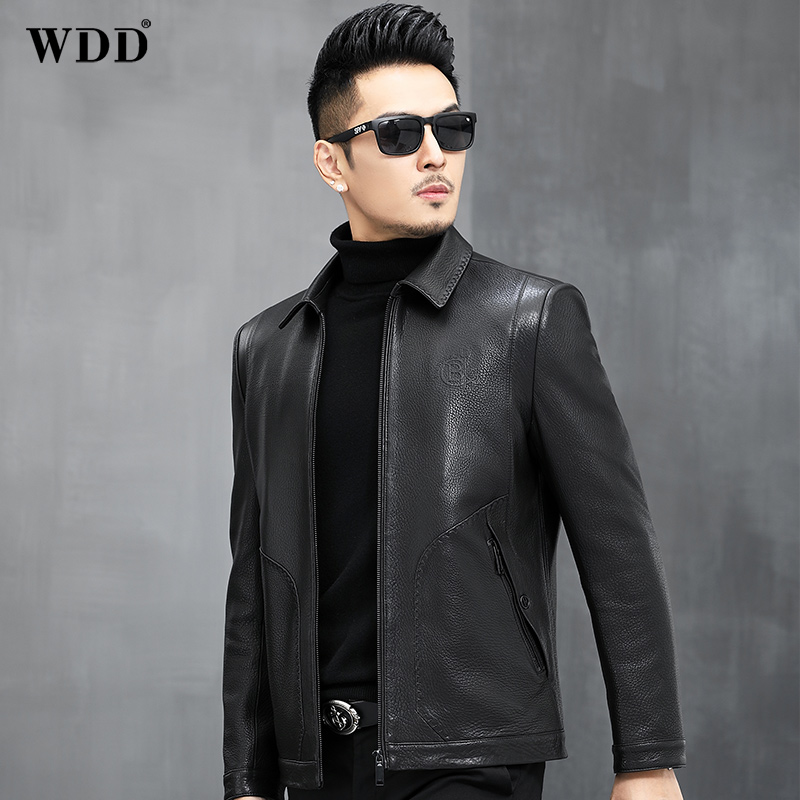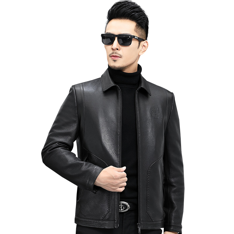 Henning Genuine Leather Leather Clothing Male Deer Leather Jacket Flap Collar Short Middle Aged Spring Business Casual Thin single-layer leather jacket
