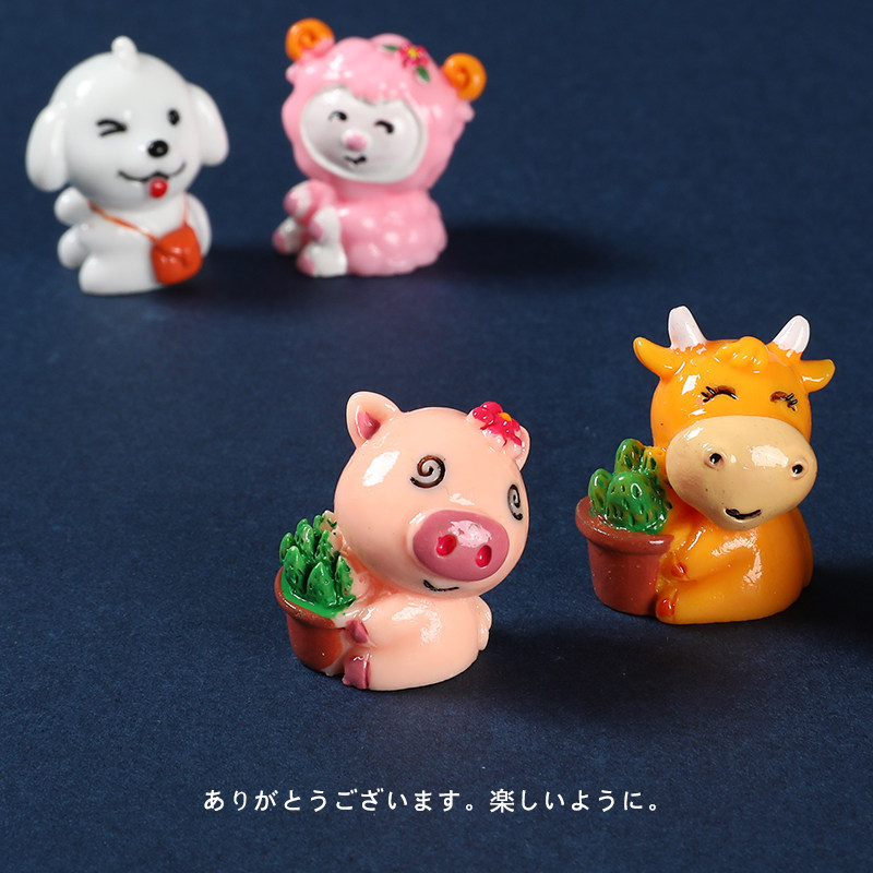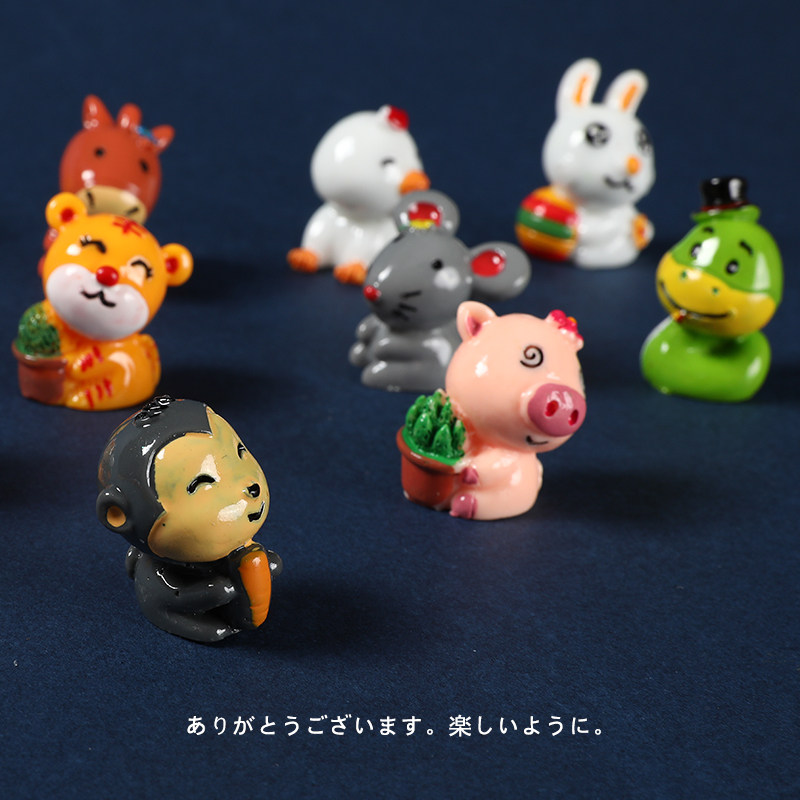 Simulation cartoon cute animal zodiac mini model scene small ornaments micro landscape resin crafts