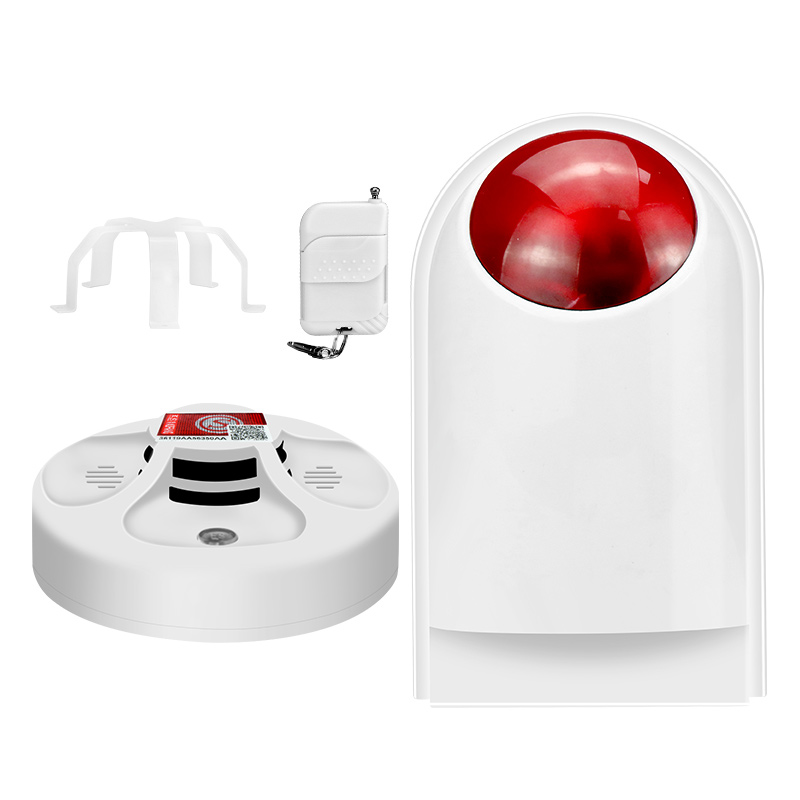 Sound and light alarm number 1 high sensitive smoke sensation (giving power) audible and visual alarm number 2 high sensitive smoke (giving power) audible and visual alarm number 1 high sensitive smoke sensation power supply adapter (give away electricity)