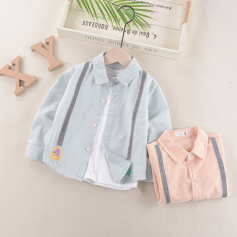 Boys' Long Sleeve Shirt 3 Baby Spring Cotton Top 2021 New Children's Striped Shirt 5 Years Old