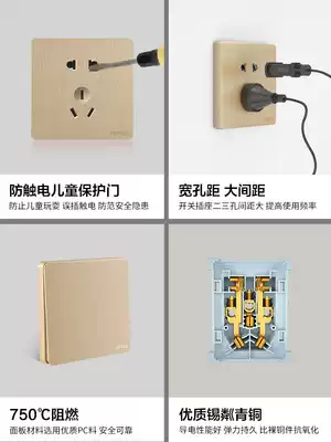 Op switch socket panel household one-open single-control five-hole K1186 gold brushed frameless large board concealed