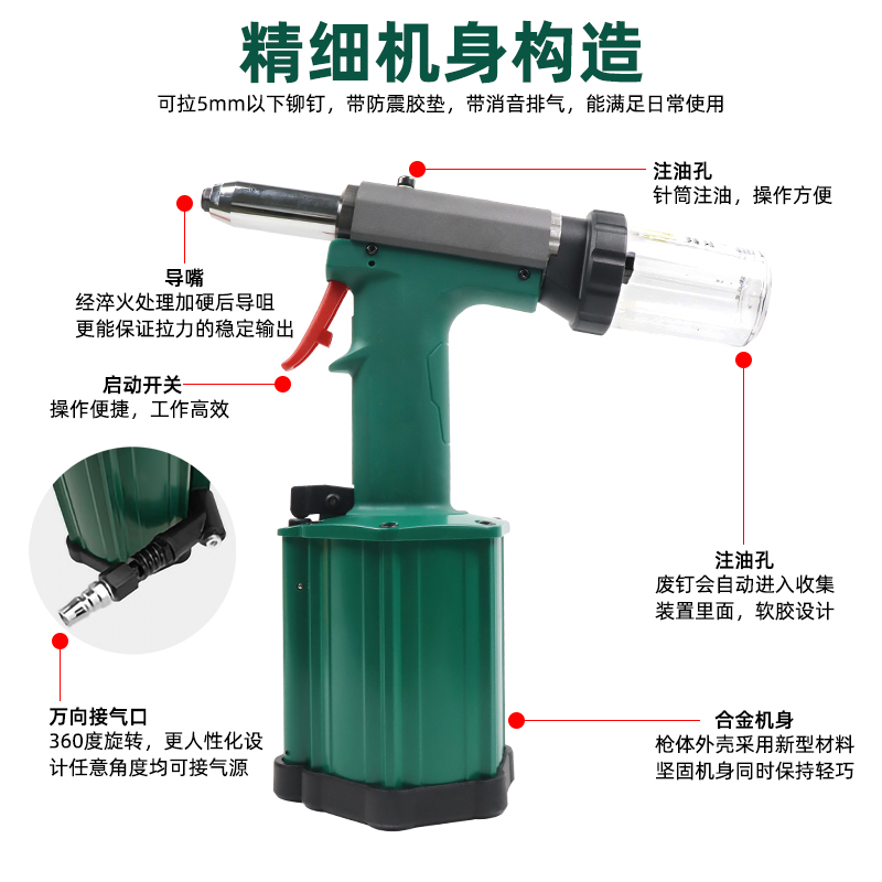 Resistant Pneumatic Pull Nail Gun Industrial Grade Stainless Steel Cramp Riveting Machine Self Suction Type Pull Riveter Pull Riveting Gun 4502V