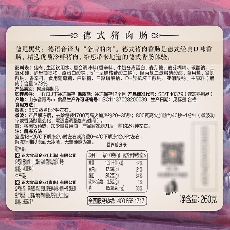 (200-100) positive Dod style pork sausage 260g bags authentic volcanic stone crispy leather hot dog grilled sausage flavor