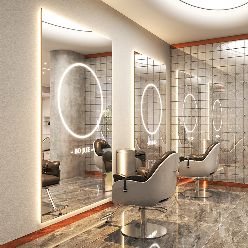 Net Red Hairdressingshop Mirror Desk Single-Sided Floor Mirror Beauty Hair Shop Mirror With Lamp Stainless Haircut Mirror Hair Salon Special