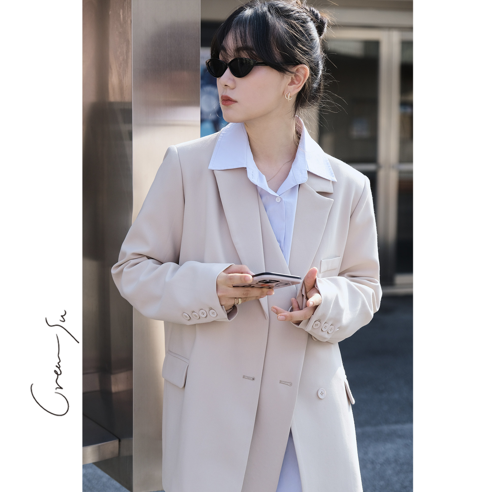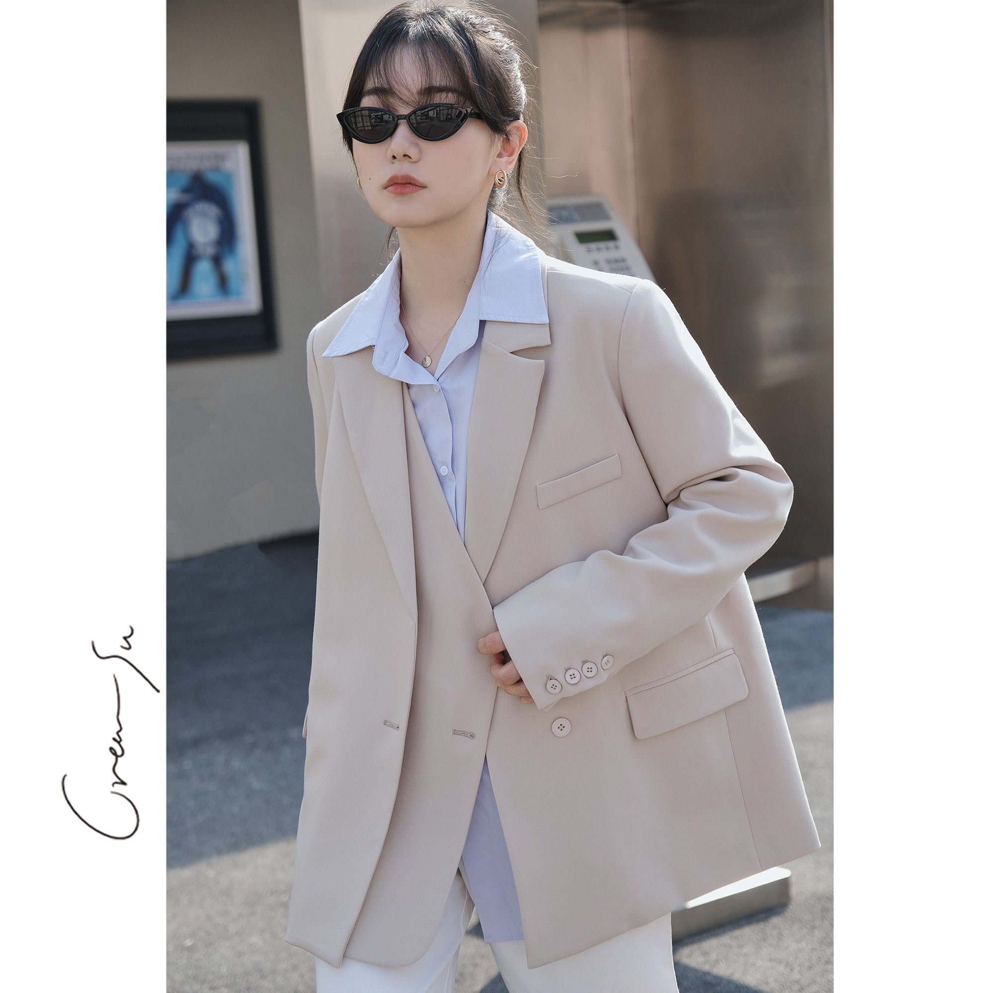 Creamsu Xubai Self-made suit jacket women's spring and autumn new style double placket design British style casual suit
