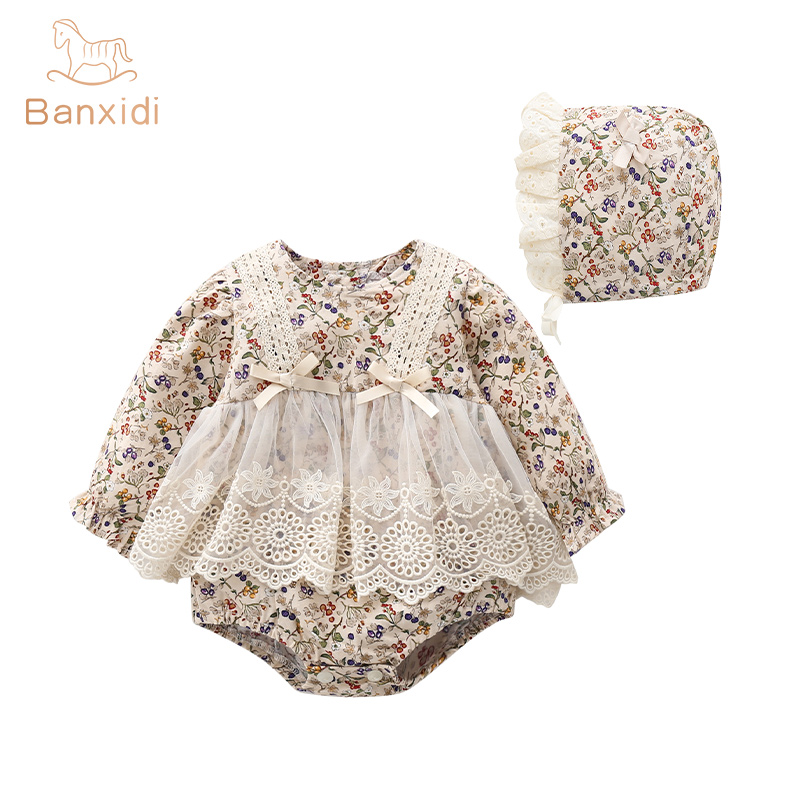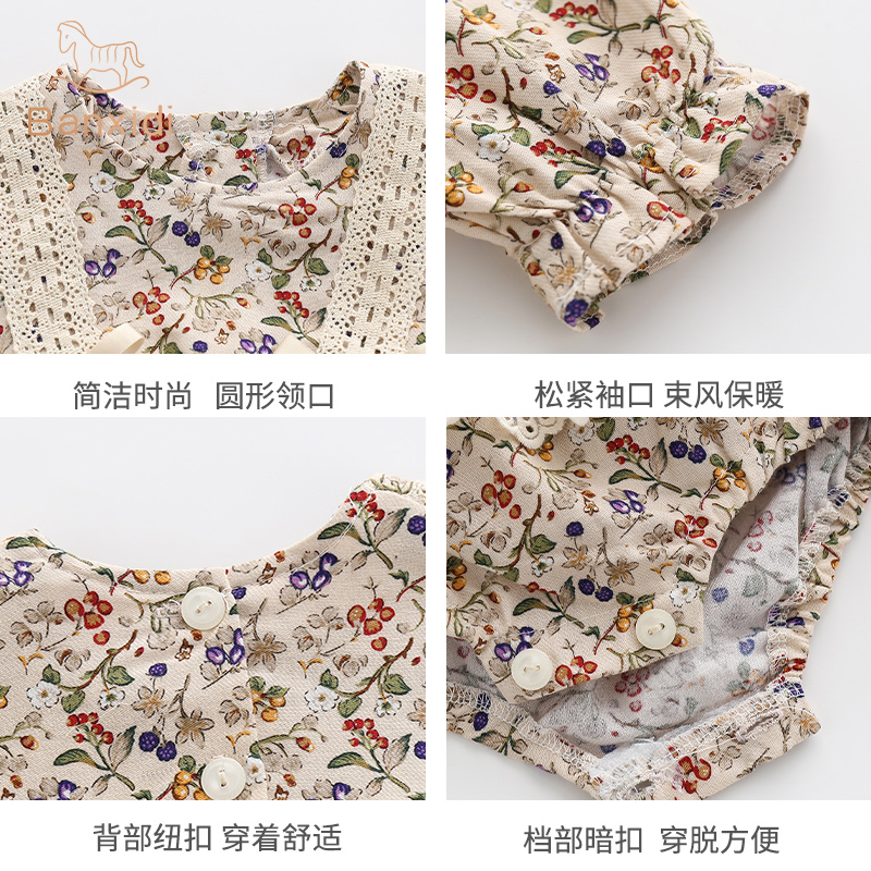 Baby clothes Spring clothes wrapped fart clothes newborn baby girl jumpsuit foreign atmosphere 100 days full moon Ha clothes spring and autumn out