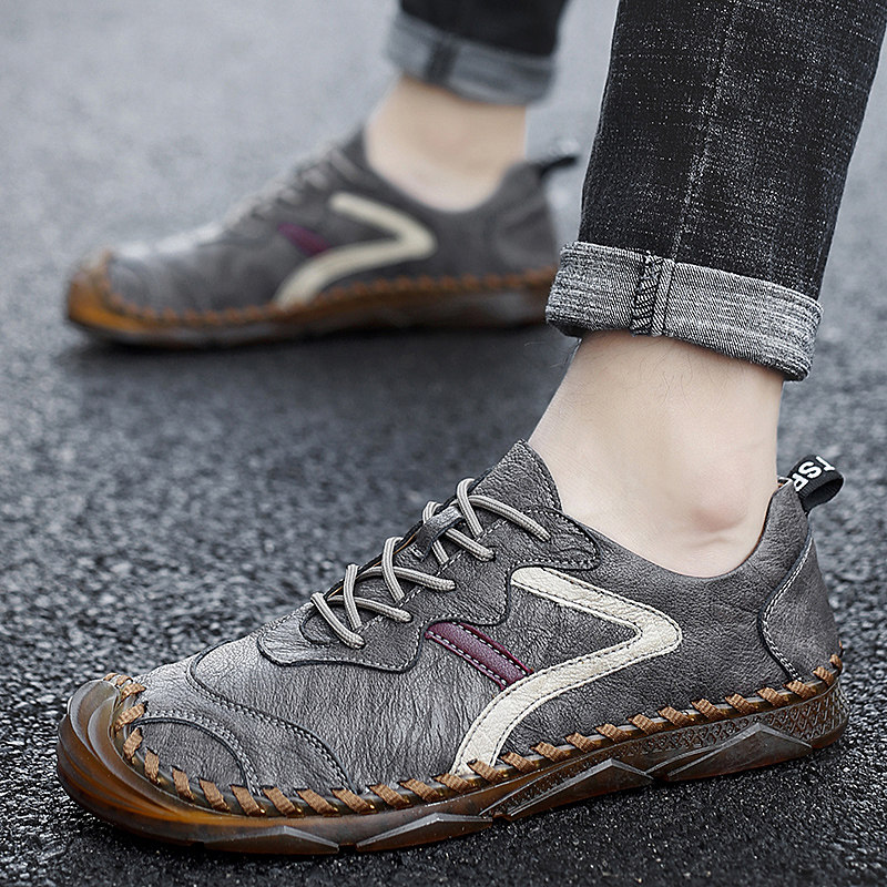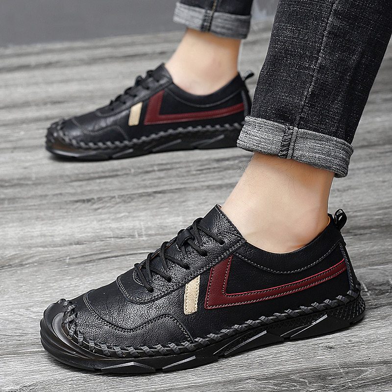 Genuine leather men casual leather shoes breathable 100 lap large size 454647 One foot pedal jacket Soft bottom Fashion bull gluten bottom comfort