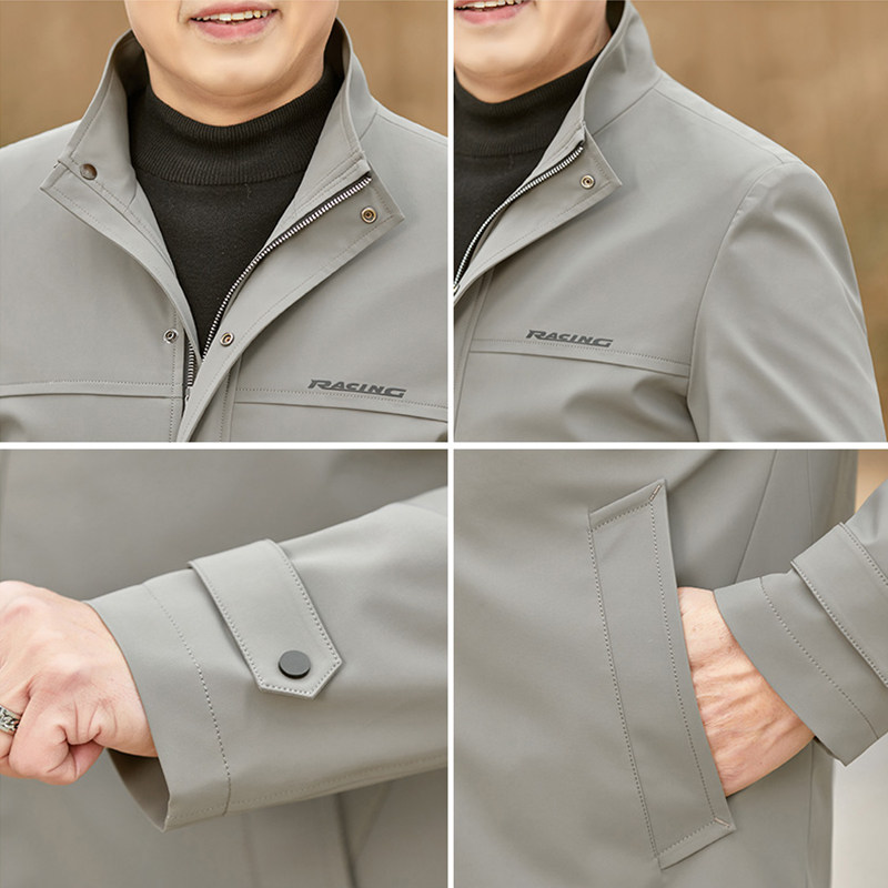 50-year-old dad spring slim fit jacket in old age clip jersey men's medium long version of wind clothes middle-aged men's spring clothing blouses
