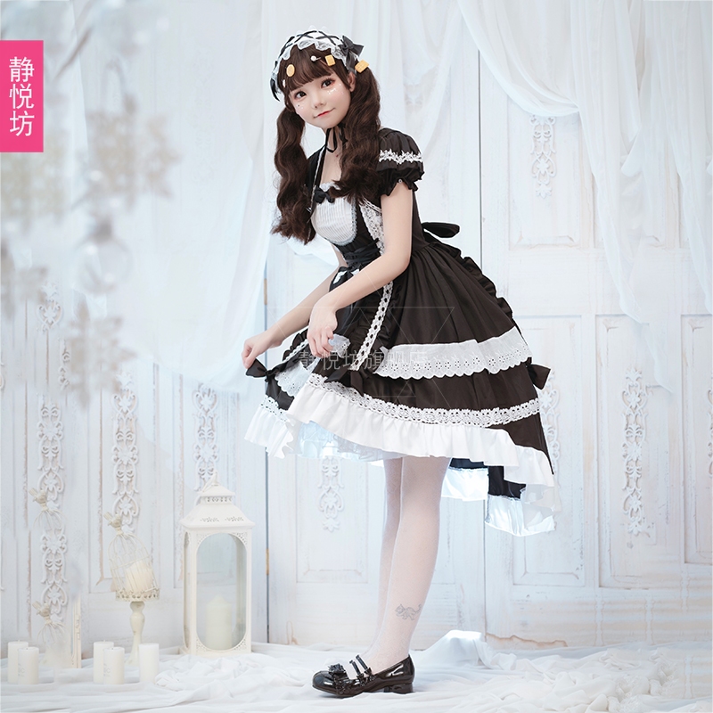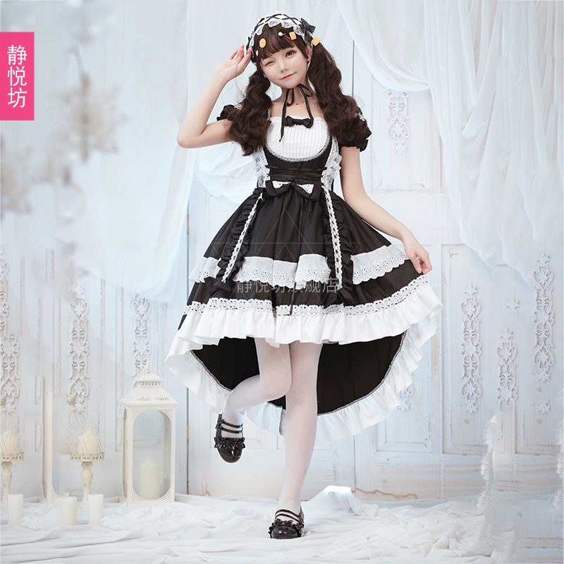 Black and white maid cosplay costume cos dress lolita goth tuxedo Dark maid dress women's clothing