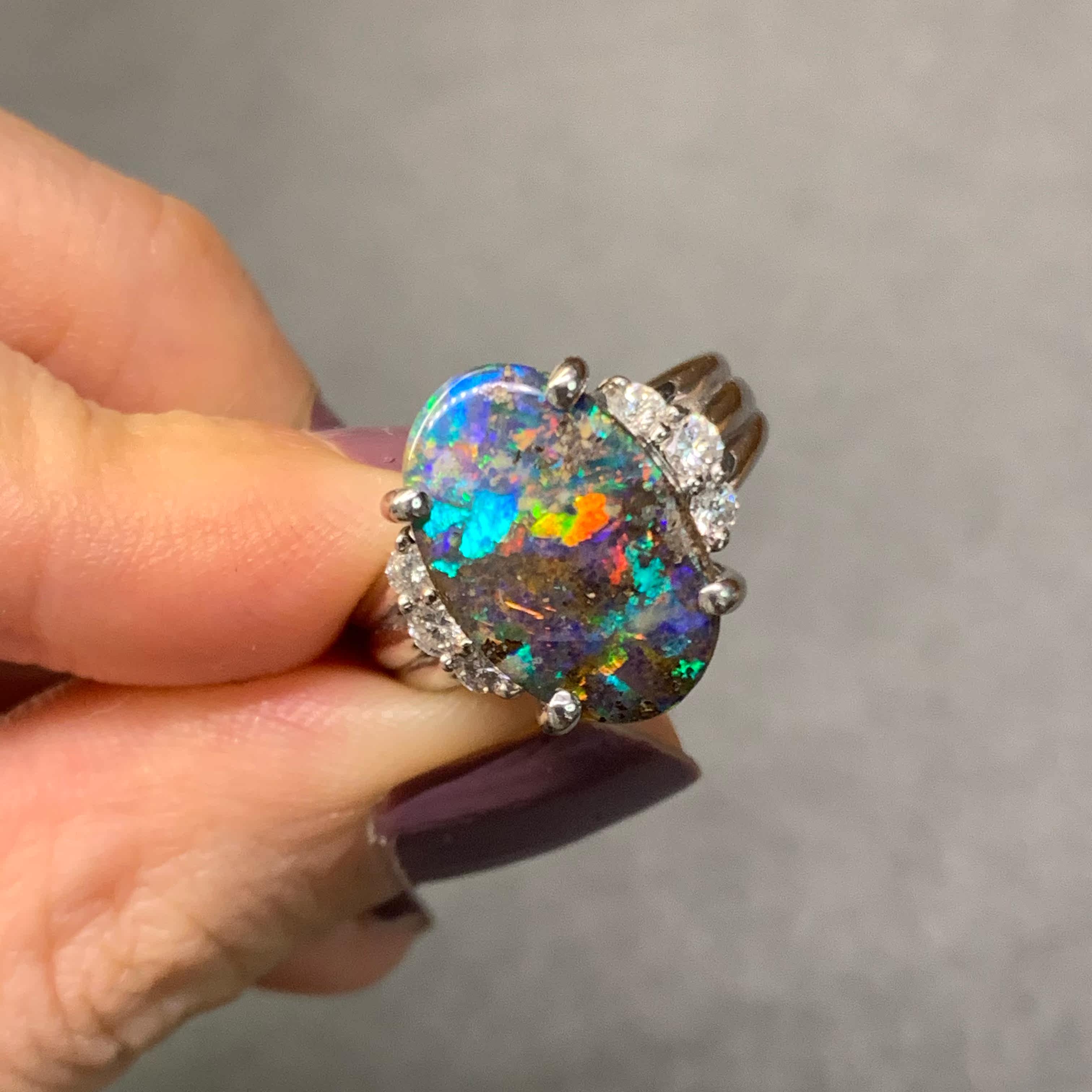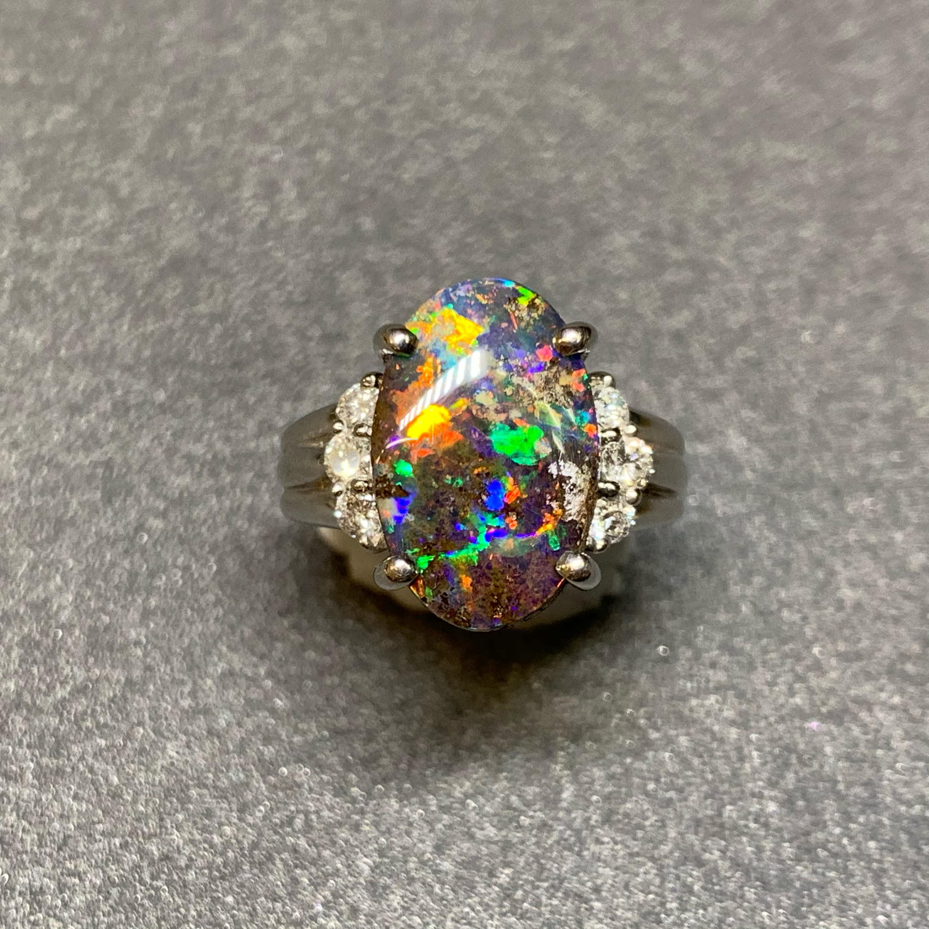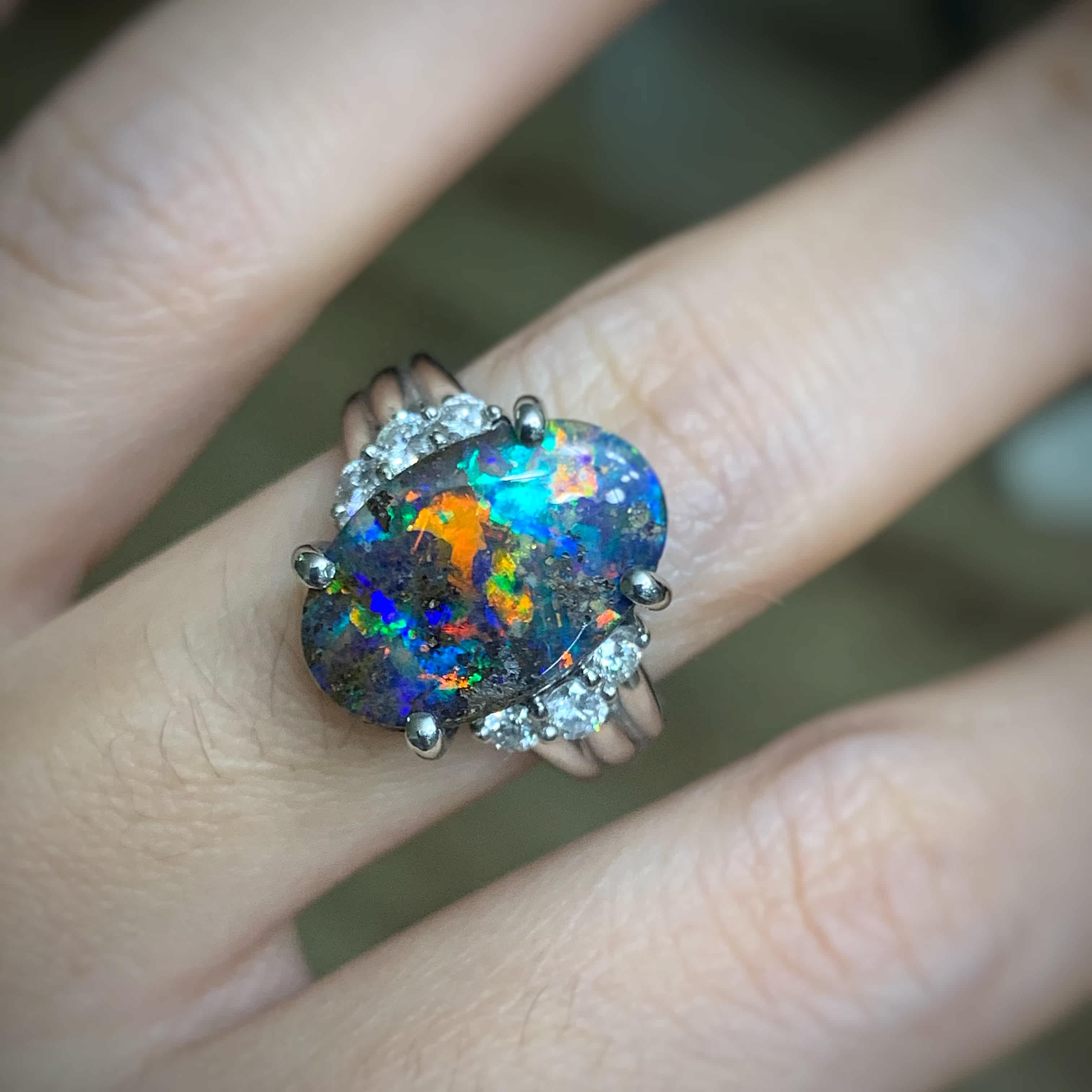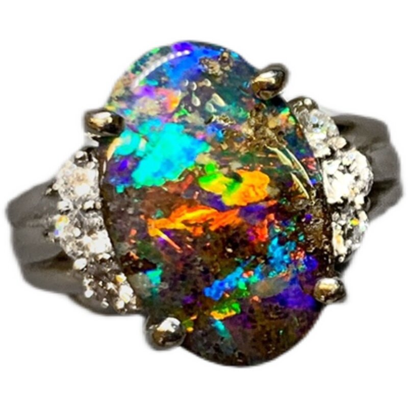 Sold Opal Island Australian Iron Opal Wood Fossil Seven-color Electric Light Rare Color Neon Blue Ring