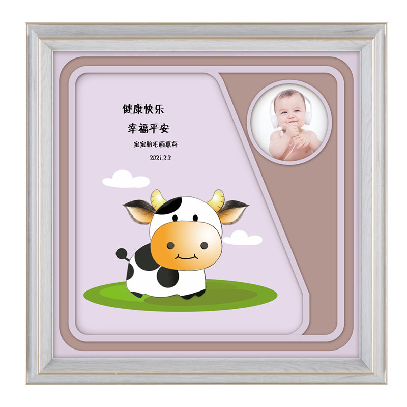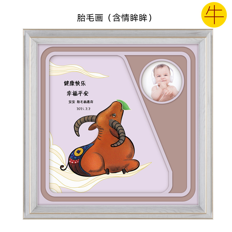 Auspicious Boy Bull Baby Born Gift custom 12 zodiac fetal hair painted baby Souvenir Wisdom Abundant 2021