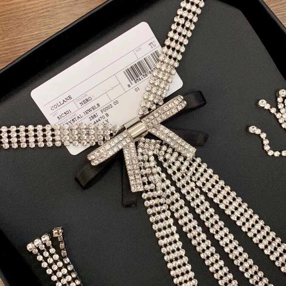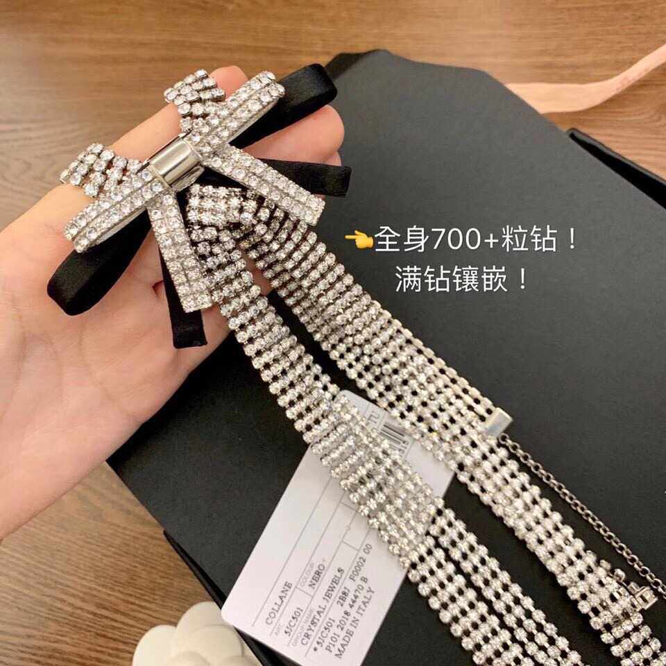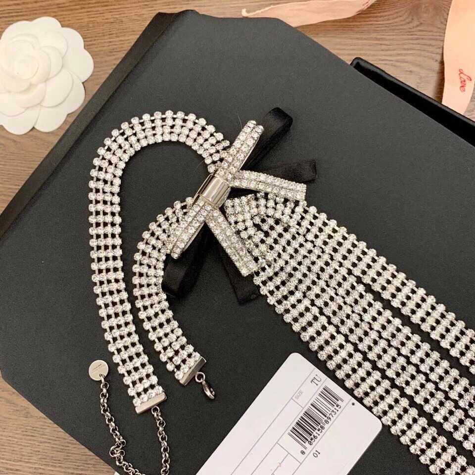 Miu custom full diamond bow necklace miu luxury heavy industry long version tassel clavicle chain temperament goddess choker