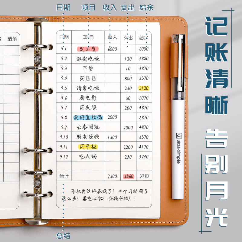 Accounting book, family financial management notebook a6 loose-leaf hand account detail account shop business small portable household children's pocket money life daily expenses consumer favor diary account book can put money