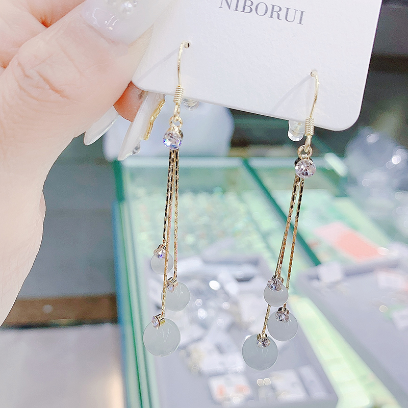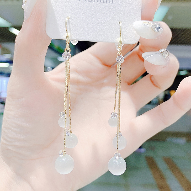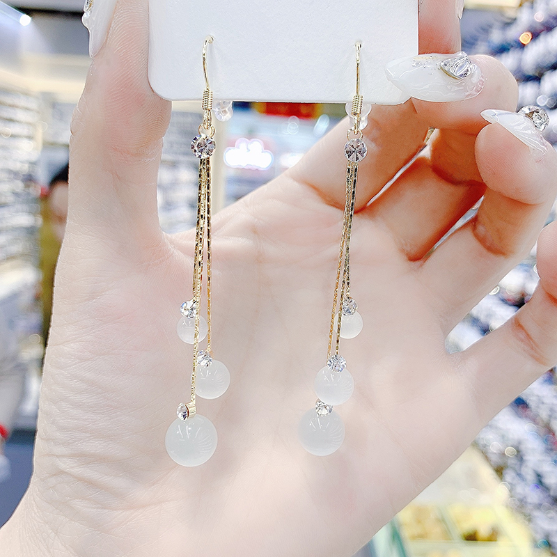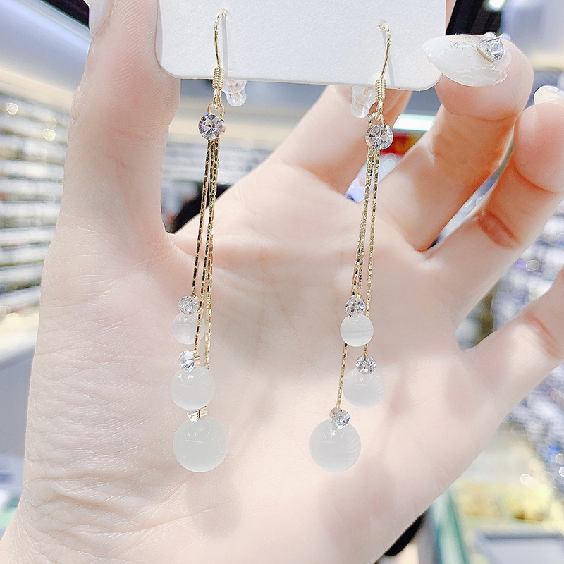 2022 new opal earrings female net celebrity temperament tassel zircon earrings Japan and South Korea all-match popular earrings retro