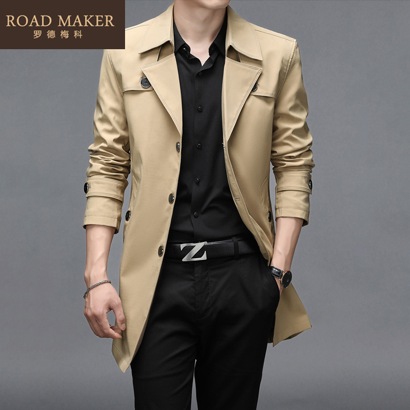 ROADMAKER windbreaker men long version 2021 Spring and Autumn New English style business casual dad jacket