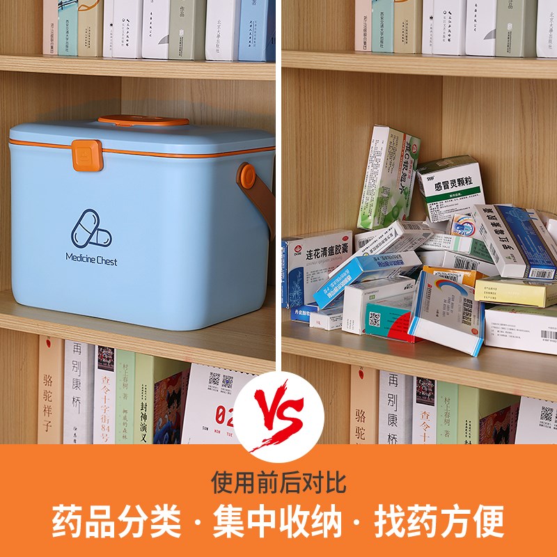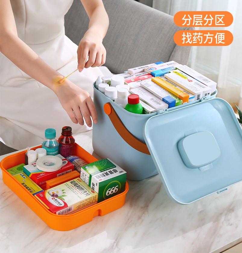 The quiet blue cell double layer (25 5*19 5*19 5) equipped children's medicine quiet blue large double layer (30 5*23 5*22 8) equipped with the family's medicine vitality