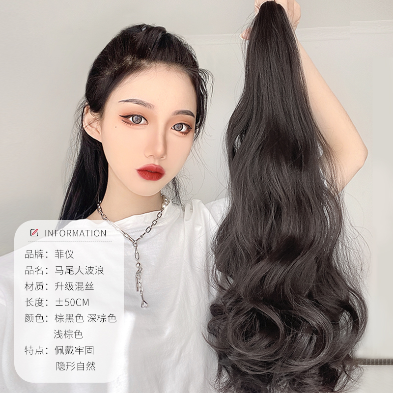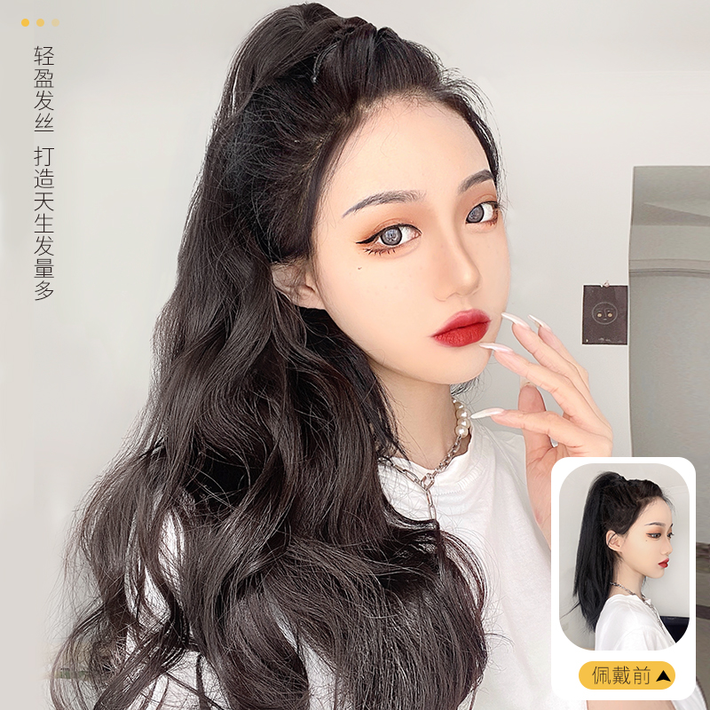 Horsetail Wig Woman Long Hair Grip Clip Wig Horsetail Tie Belt Large Wavy Long Curly Hair High Ponytail Fake Horse Tail