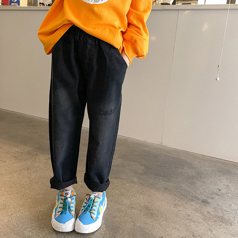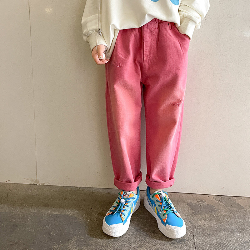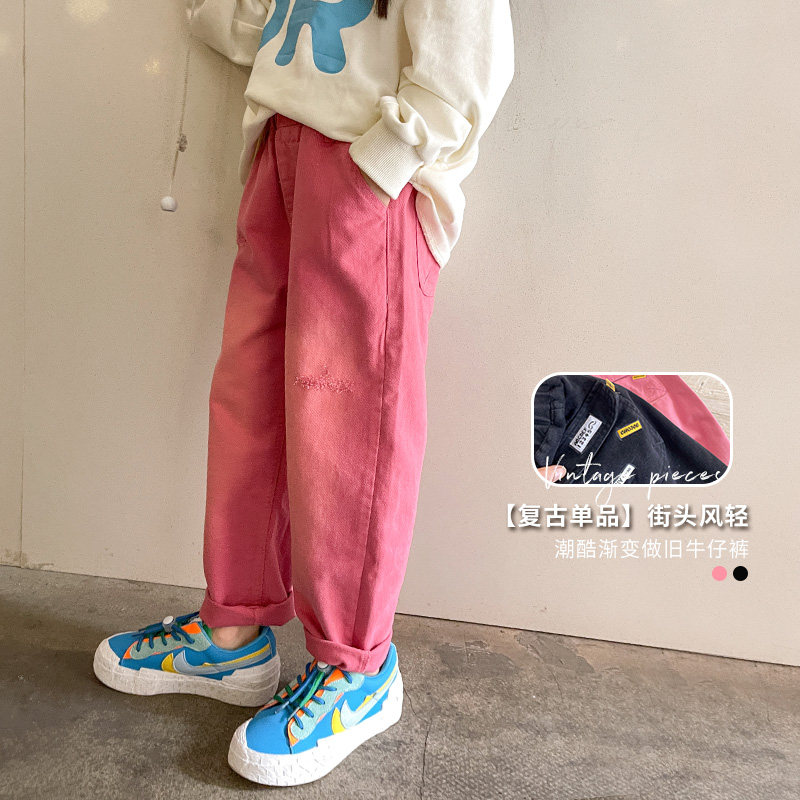 Girl Jeans Pure Cotton Spring Money 2022 New CUHK Scout 100 Lap Straight Drum Pants Tapering Children Casual Pants Summer