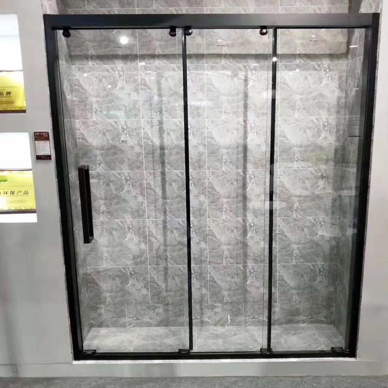 Customized shower room one-shaped 304 stainless steel black three-link tempered glass sliding door shower partition