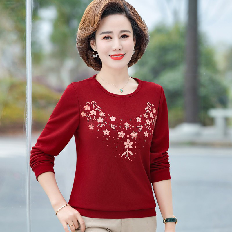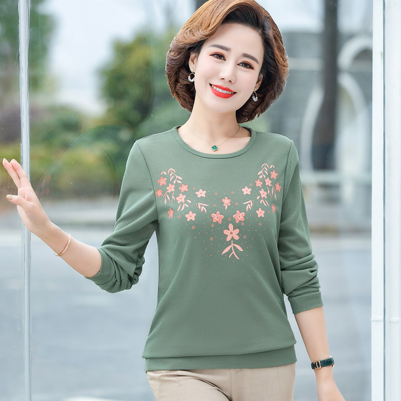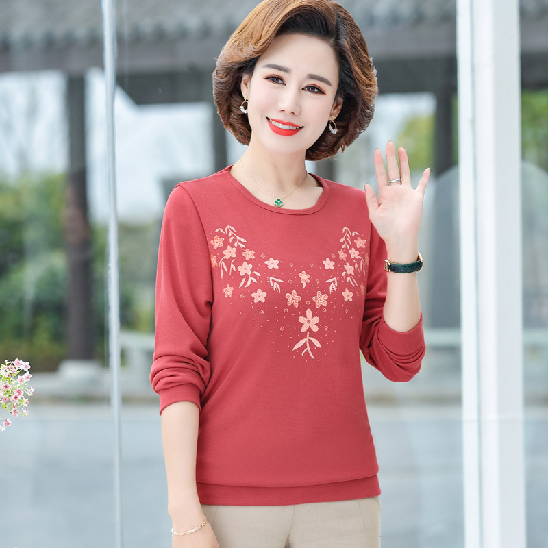 Middle Aged Mother Dress 2023 Autumn Dress New Jersey Woman T-Shirt Long Sleeve Middle-aged Woman Dress Foreign Air Loose for Big Code-Taobao