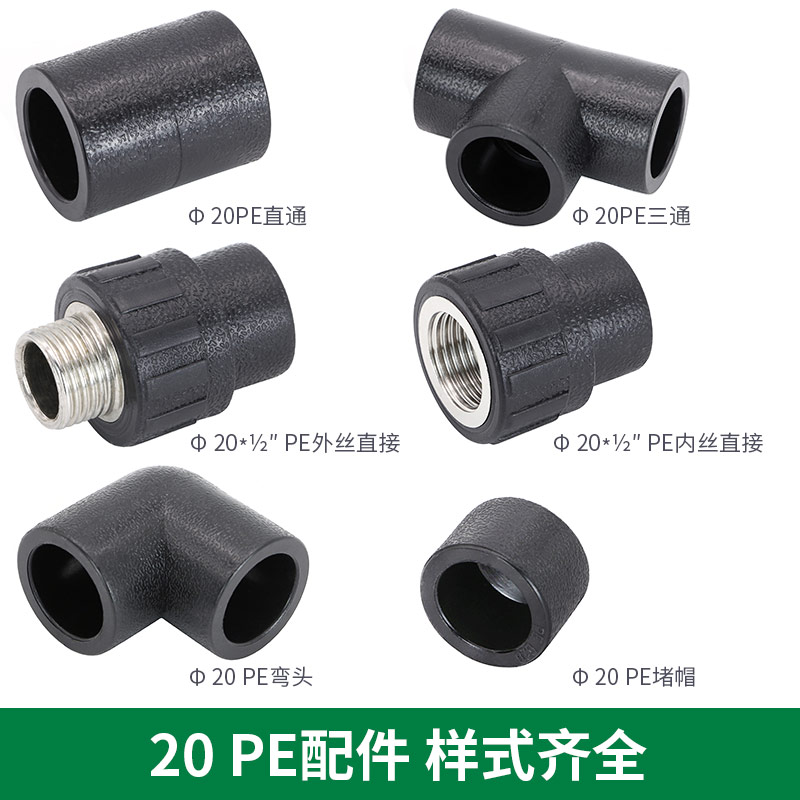 HDPE20 4 parts hot melt pipe fitting pipe fittings tap water pipe PE fitting straight through elbow tee plug cap