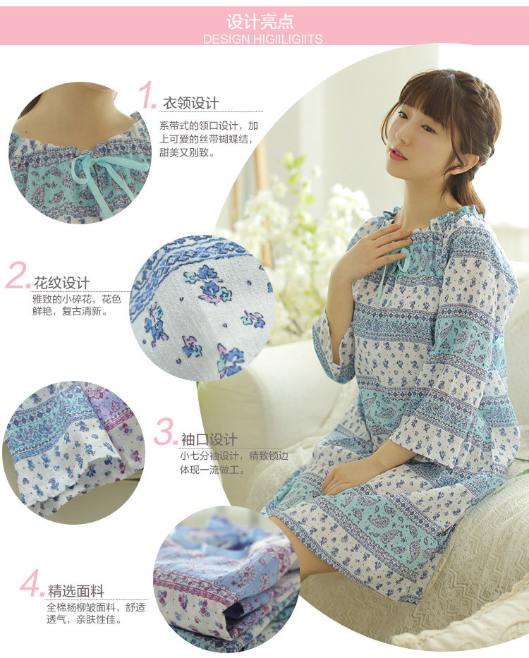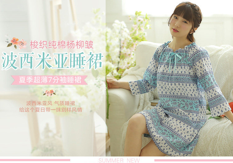 Special price clearing house Summer ultra-thin full cotton Young willow Sleeping Skirt Poxignano Wind 70% Sleeves Light Thin home midskirt
