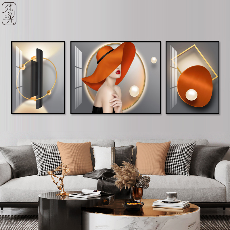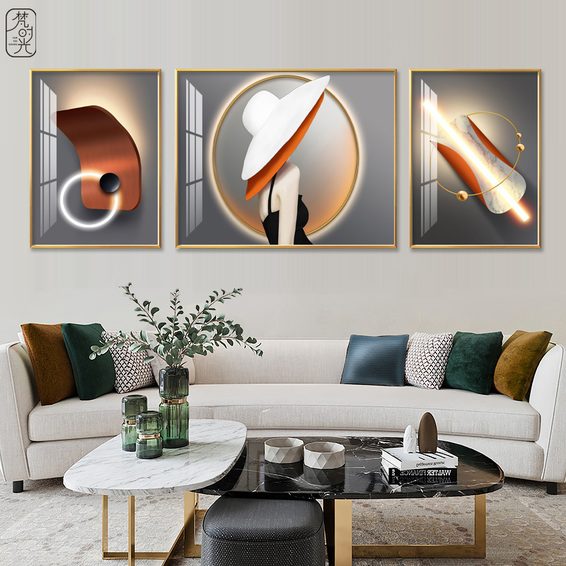 Living room decoration painting modern minimalist light extravaganza Sofa Background Wall Decoration Painting Triptych Porcelain Painting Character Hung Painting
