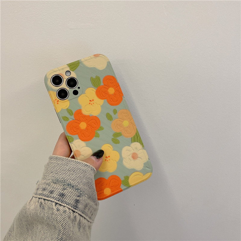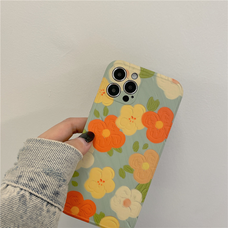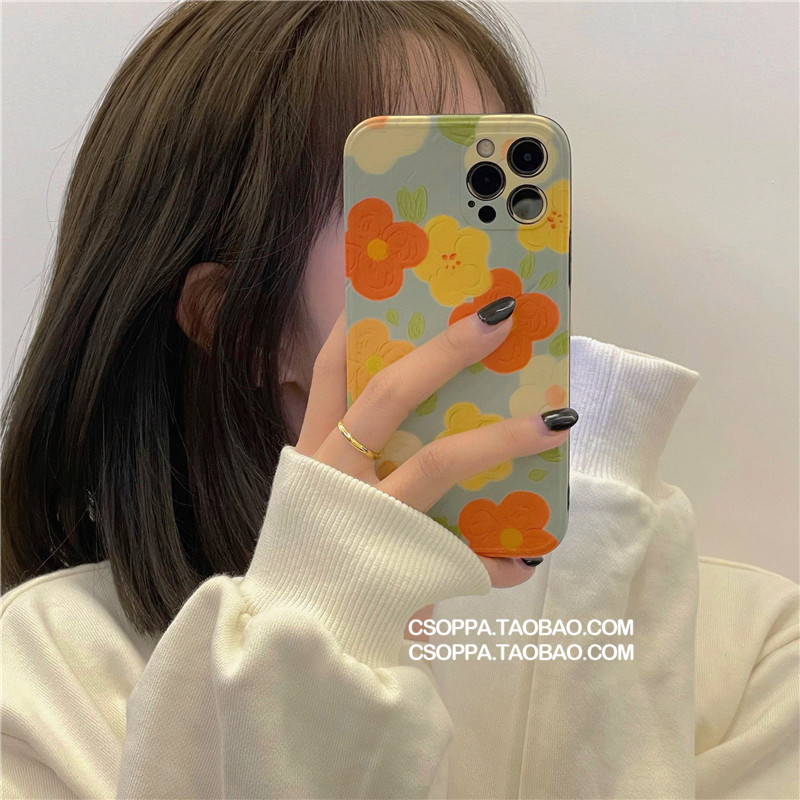 Apple 11 photo frame light green orange blossom 11pro photo frame light green orange yellow small flower 11pro max photo frame light green orange yellow small flower X Xs photo frame light green orange yellow