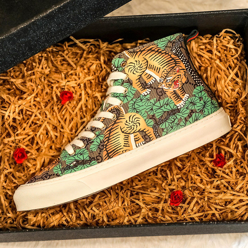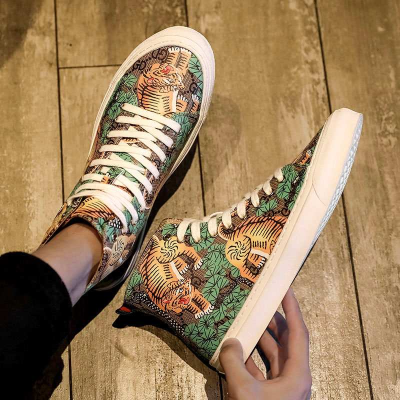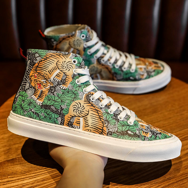 European station autumn new men's trendy shoes printed high-top shoes men's fashion Korean version all-match trend men's casual sneakers