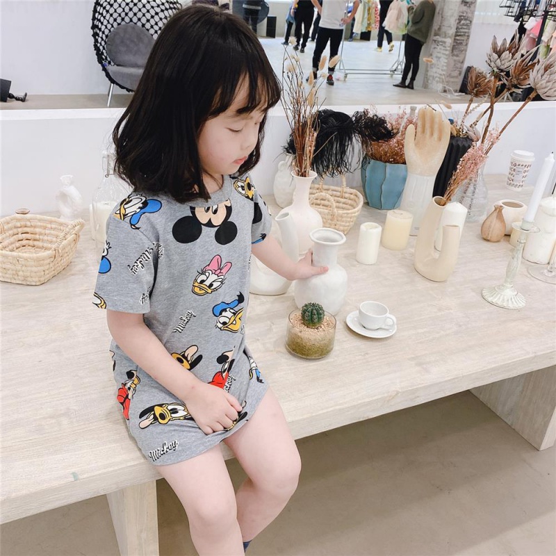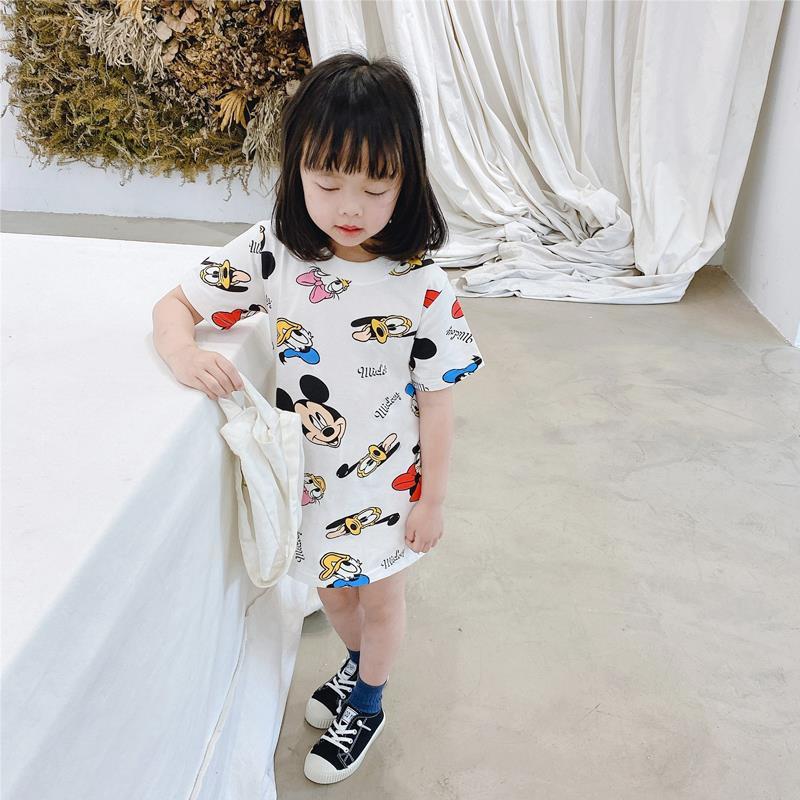 Girl short sleeve one-piece dress 2023 new summer baby cartoon Mickey T-shirt dress in child foreign air dress-Taobao
