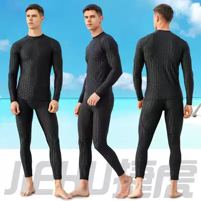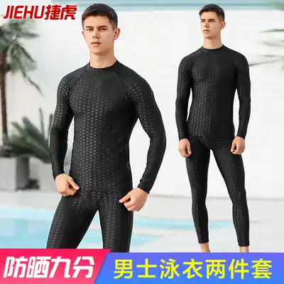 Swimsuit men's two-piece long sleeve top anti-embarrassing hot spring swimming trousers swimsuit sunscreen warm equipment set