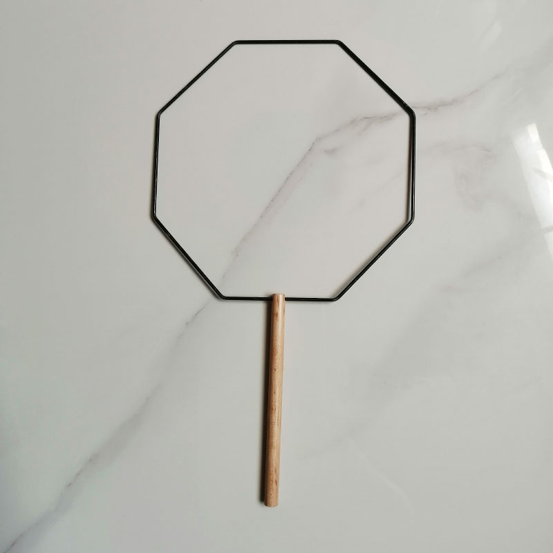 Surface embroidery fan frame shaped round hand-shaped fan frame accessories custom beech sandalwood long handle