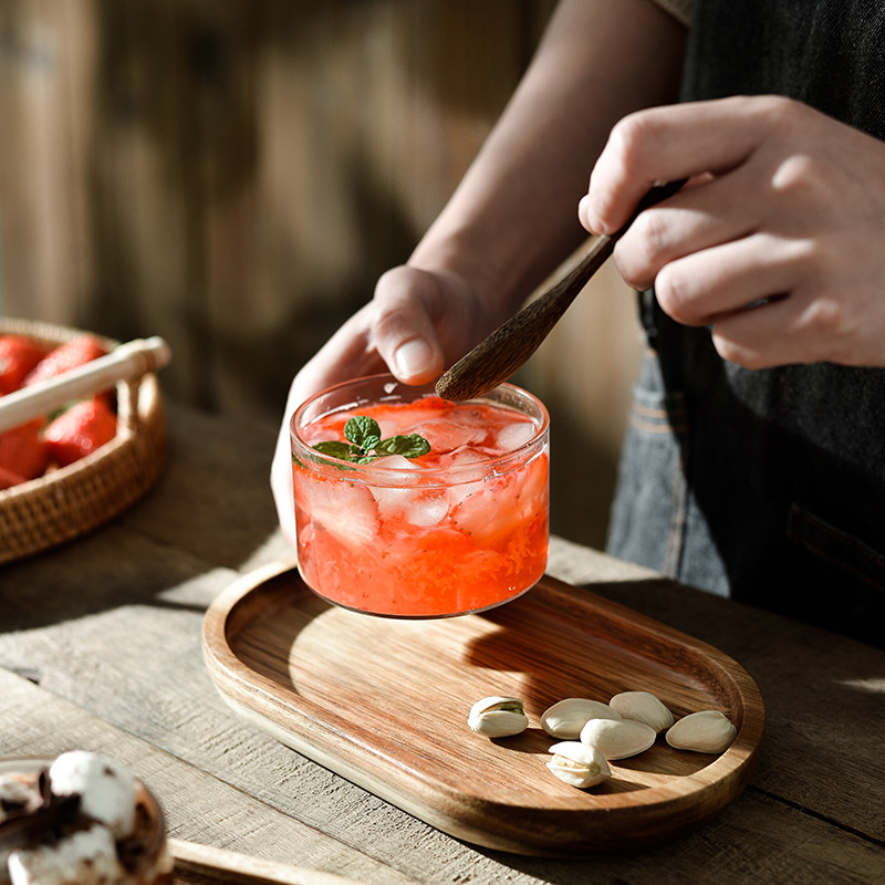 High face value net red glass sweet bowl Next afternoon tea cutlery cutlery one-person breakfast bowls pan-day-style wooden depanting