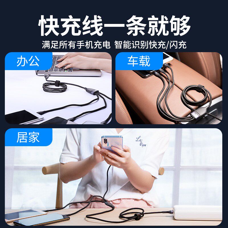 Double charge data line Three-in-one charging wire device 40W mobile phone quick charge one drag three 5A suitable for Apple Android II