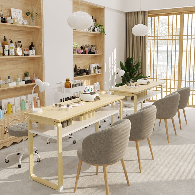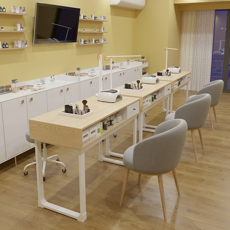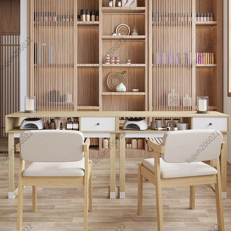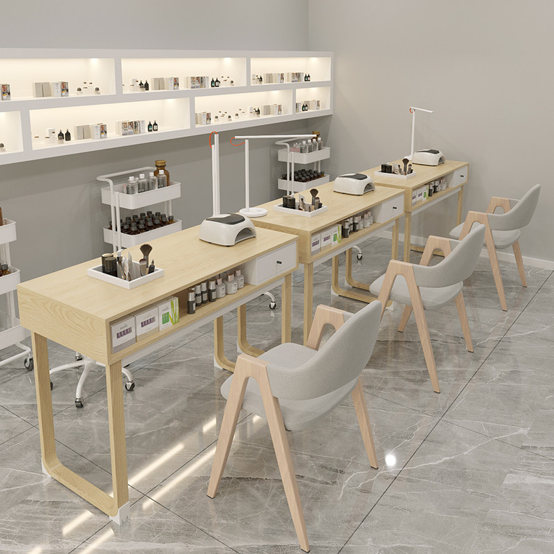 Plain wood color nail table and chair set Japanese simple special price Economy Single double person Net red ins light luxury nail table