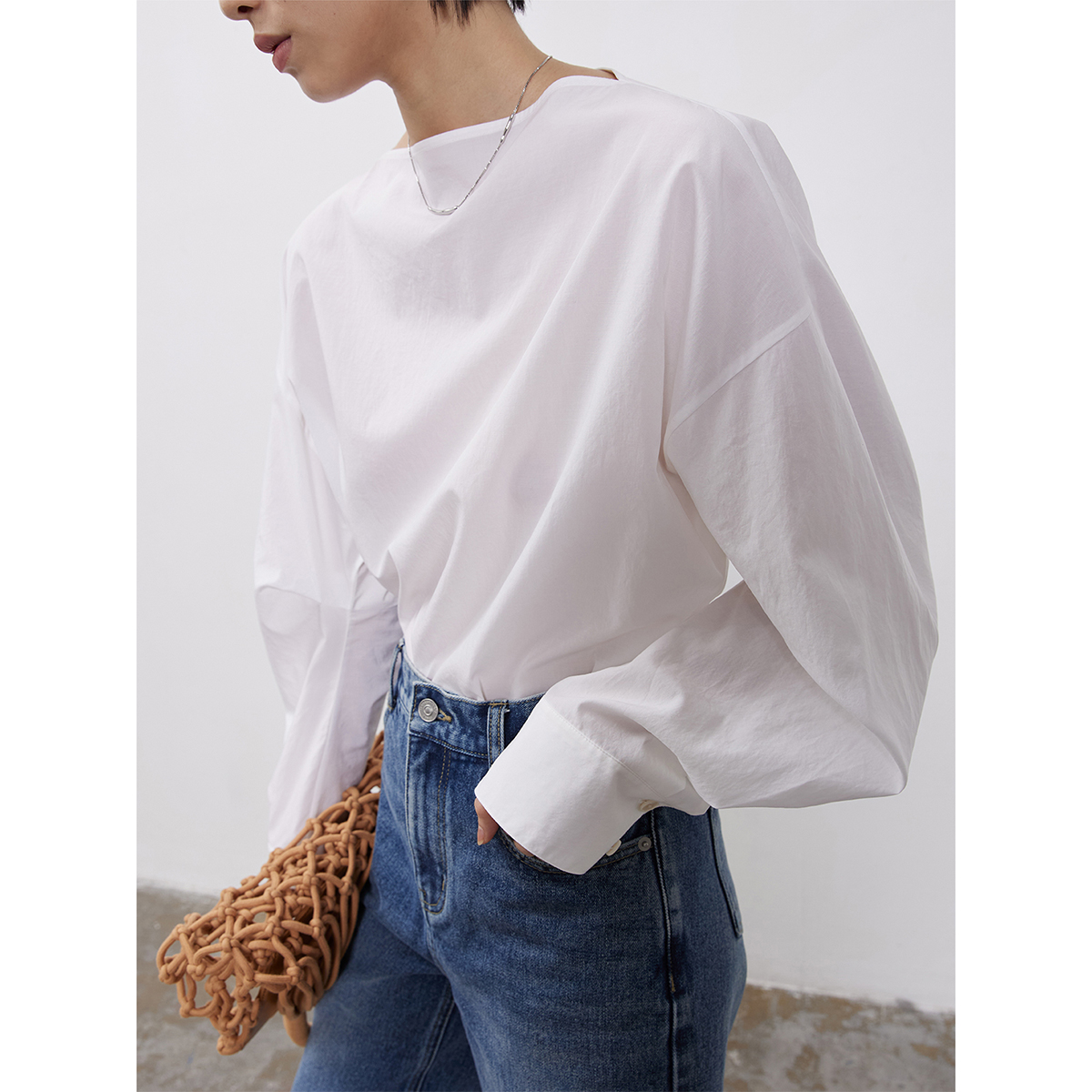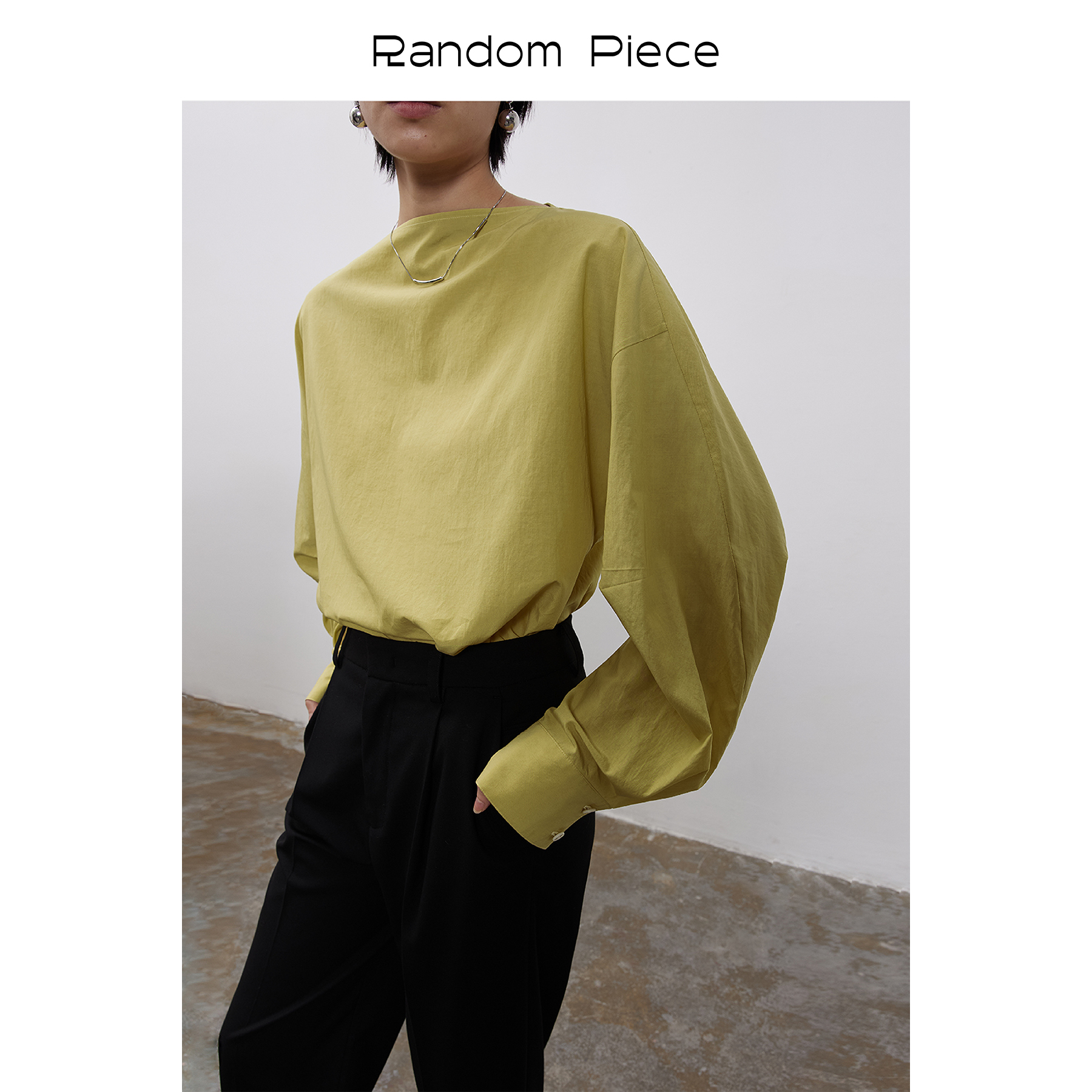 RandomPiece Spring Misty Lyocell cotton sand wash craft one-line collar silhouette cuff overshirt