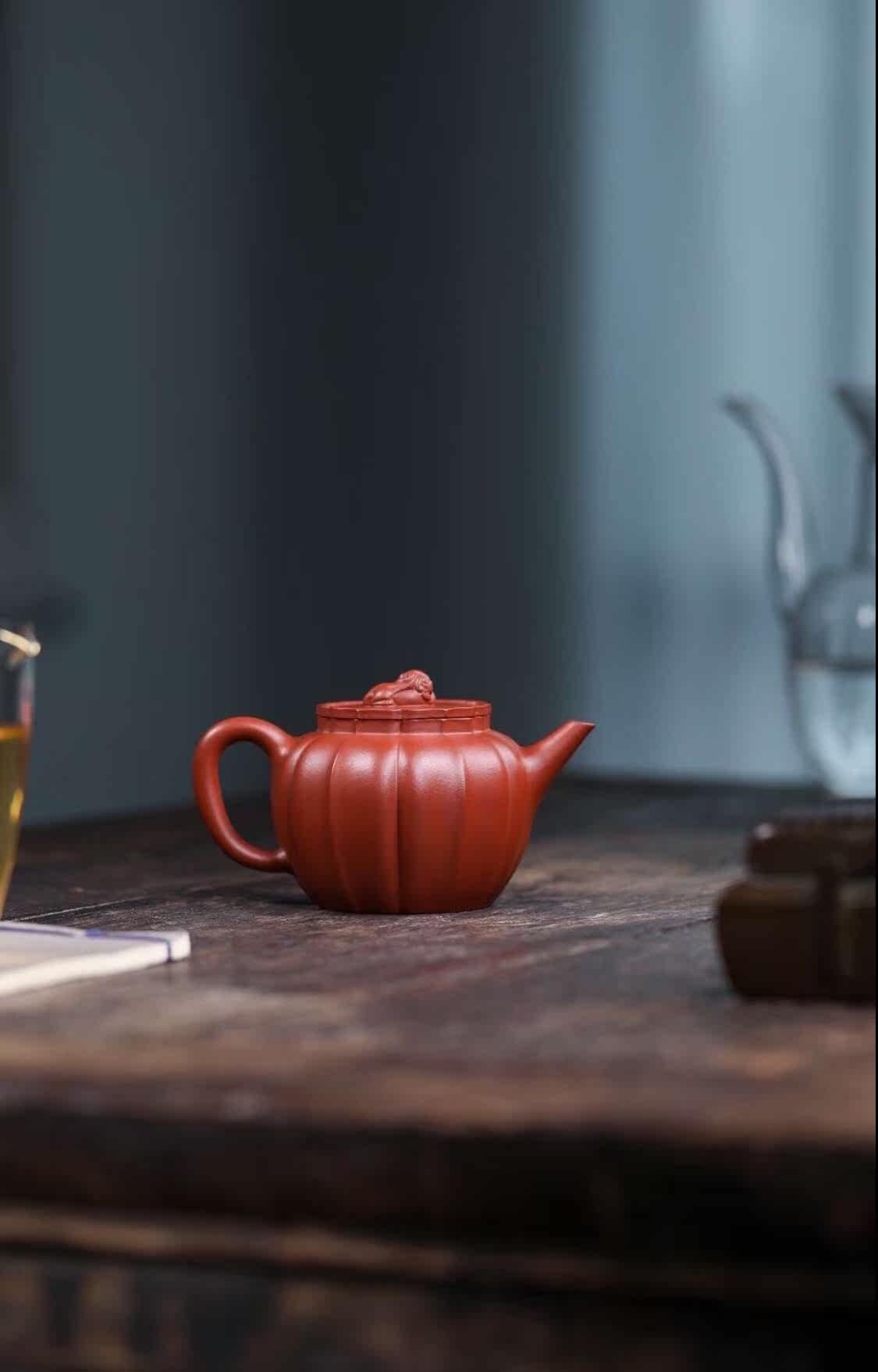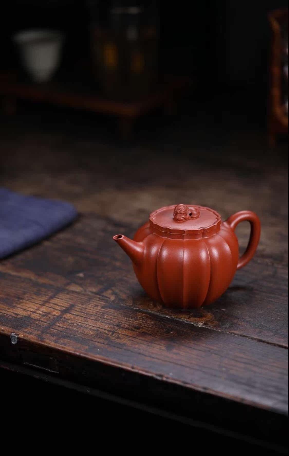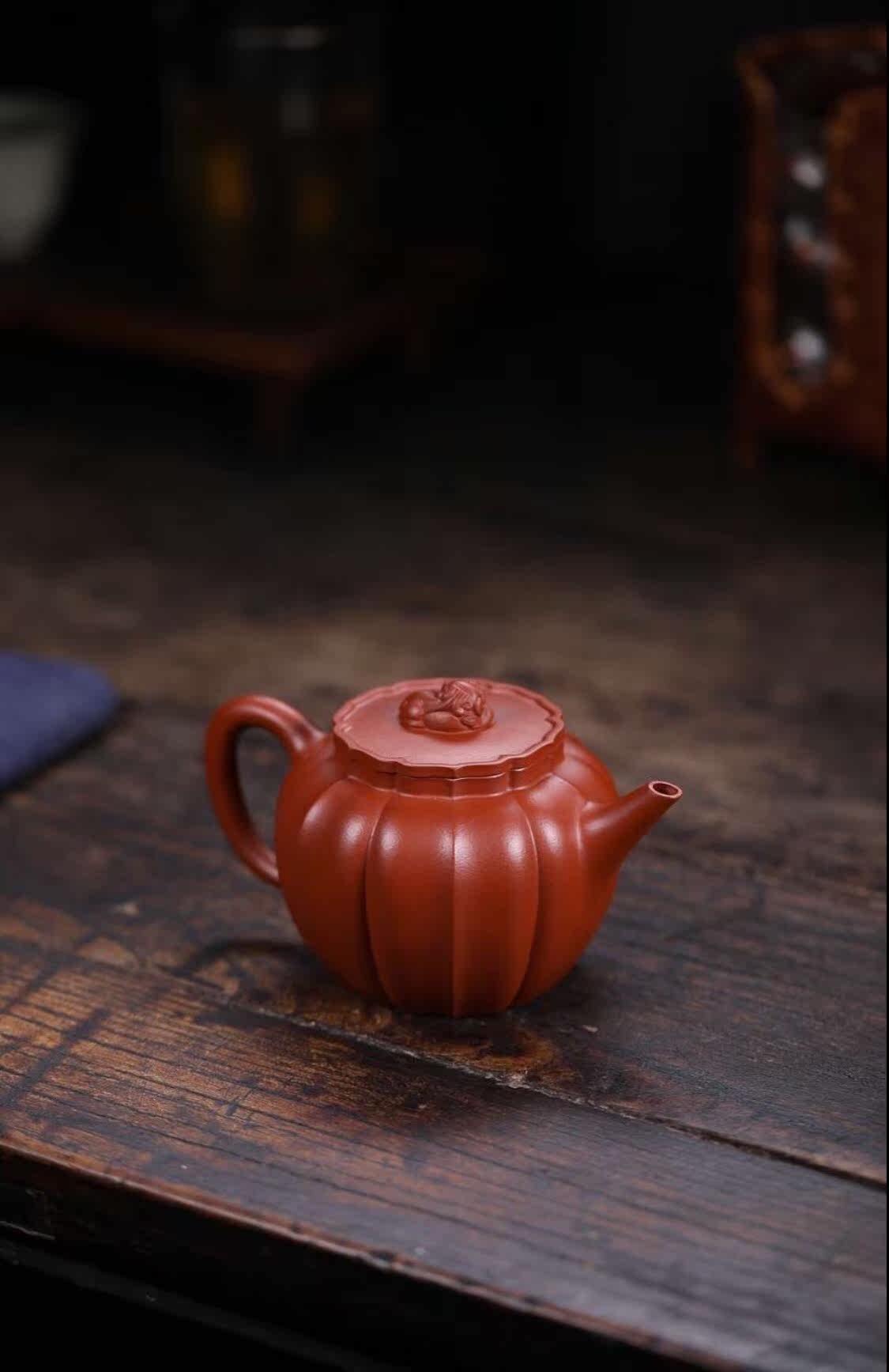 Tao Xiangxuan Yixing purple sand pot rib pattern lion ball capacity 240c raw ore vermilion mud