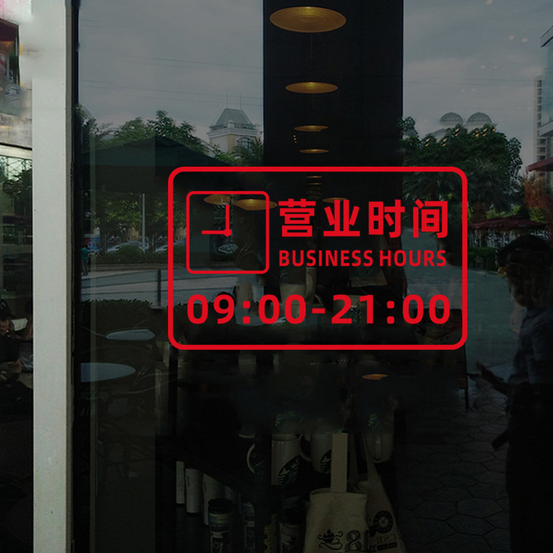 Custom Business Time Sticker Glass Sticker Door Sticker Hotel Clothing Milk Tea Shop Café Shop Glass Door Stickers