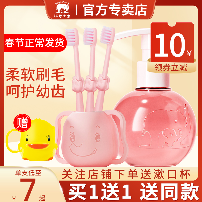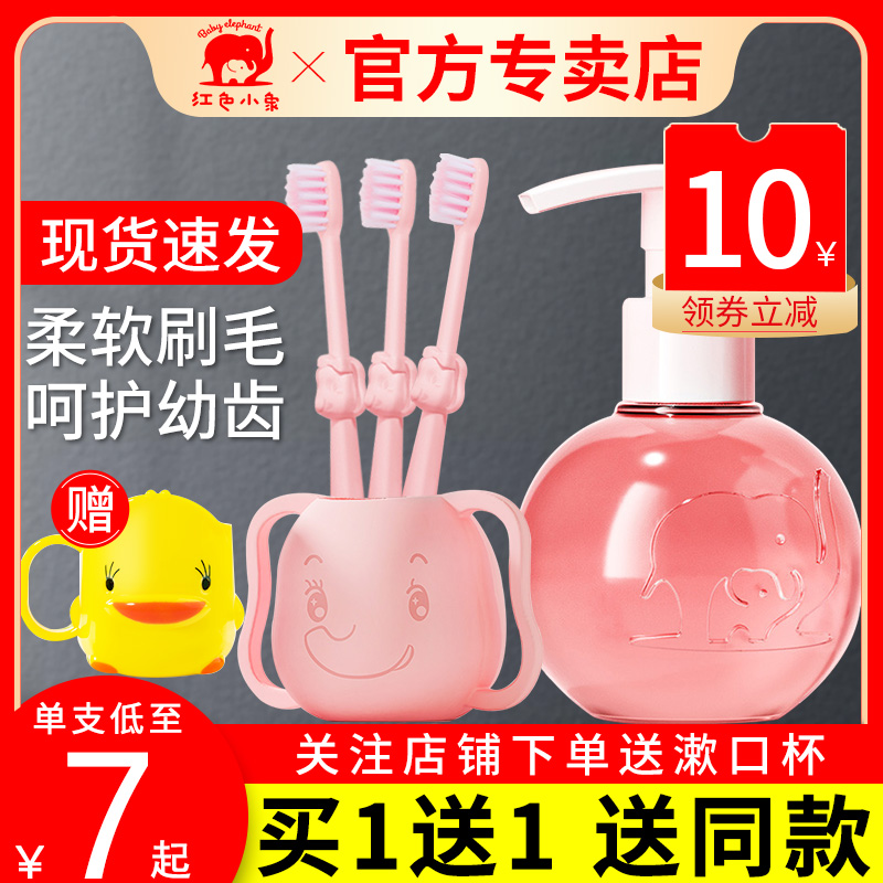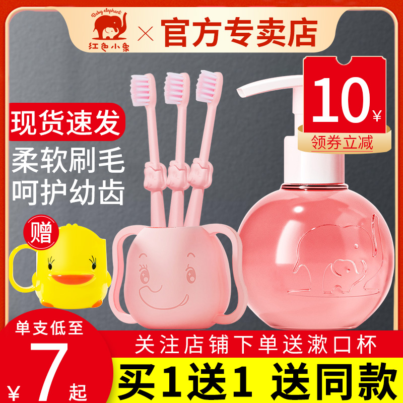 Red small elephant baby boy soft hair toothbrush toothpaste suit baby 1-2-3 years old exclusive for oral cleaning